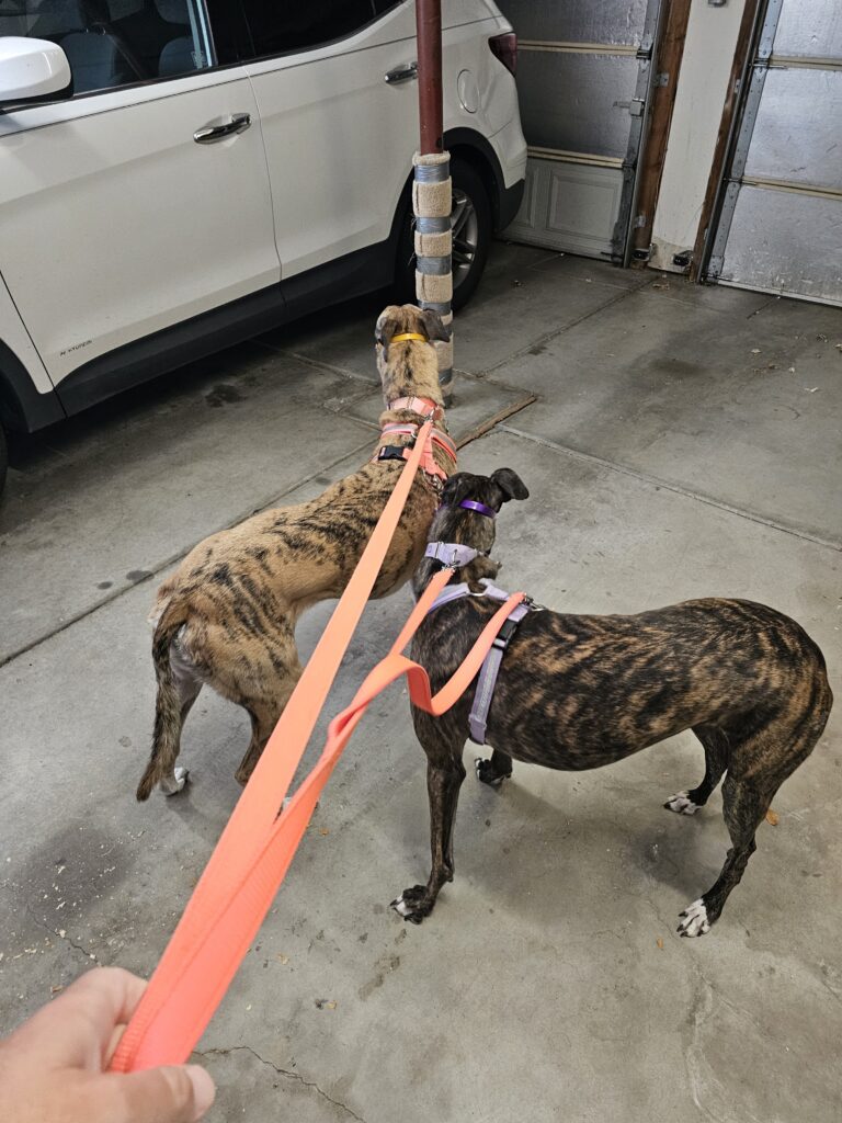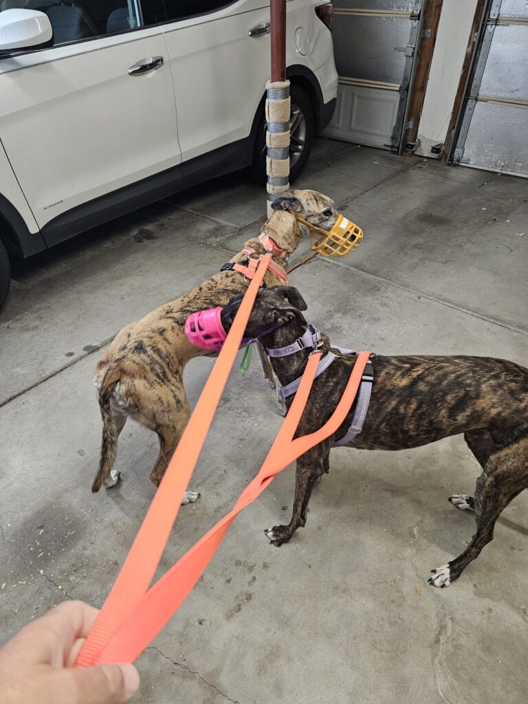 Res: Nope, Dawgtor is only one of us at a time. We both on leashes and muzzles. We both go.