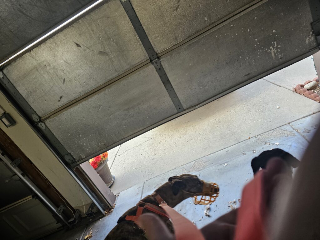 Res: Dad’s car is out of the garage and we are in our muzzles! Don’t you dare mess this up!