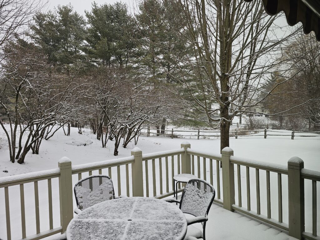 Good morning! Today’s post is am going to write in sections as the day goes on. Anyways, got up this morning to falling snow.