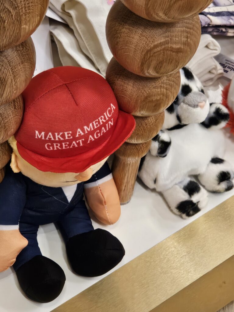 Wandering the terminal here at IAD (Dulles International in DC) waiting for my flight. Wondering if he is forcing the gift stores to carry this crap.