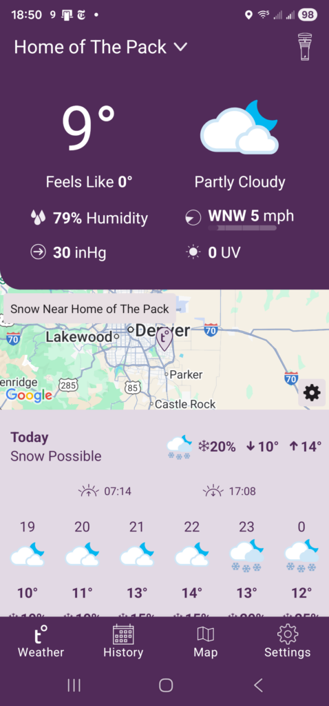 Hey All! Aurora, CO is now officially participating in Winter. The Pack (and their humans) are not pleased at all. For the sake of frozen paws, and frozen hands, I do not think we are going to be going for pack walks until Monday. I am debating if I am even going to go to the Rec Center tomorrow, and if I do will it be a swim day or a treadmill day. I am thinking treadmill or indoor track.