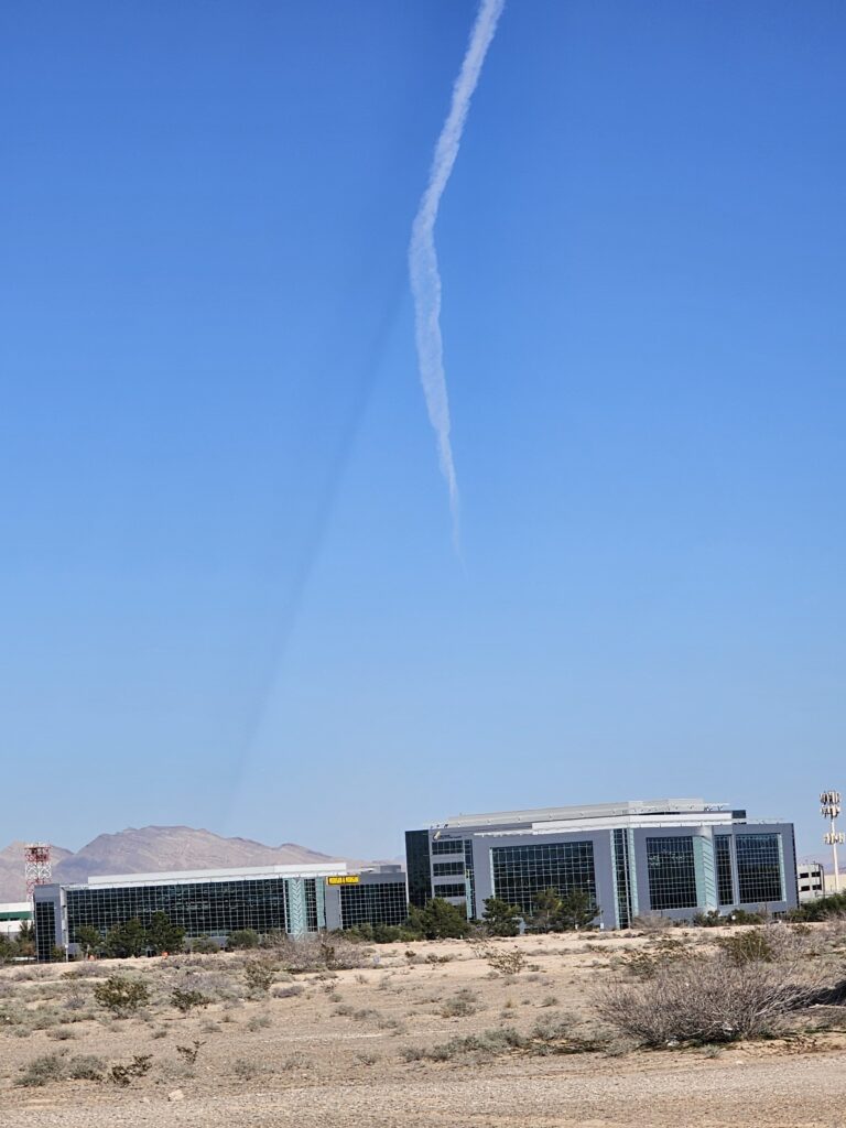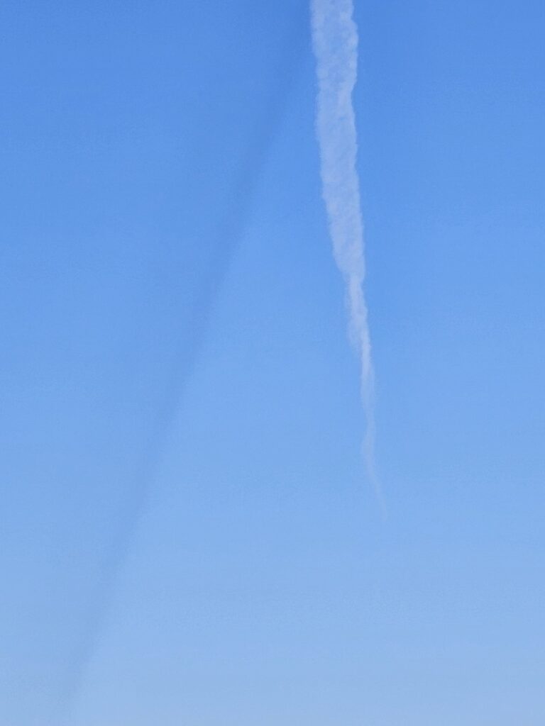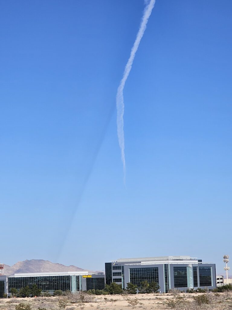 Walking back to the hotel past the airport I noticed a contrail that was casting an interesting shadow near the end of it. It was just in the right place to act like a cloud and cast a shadow. Let's let the conspiracy theorists talk about this little shadow creating weather changes and preventing rain.