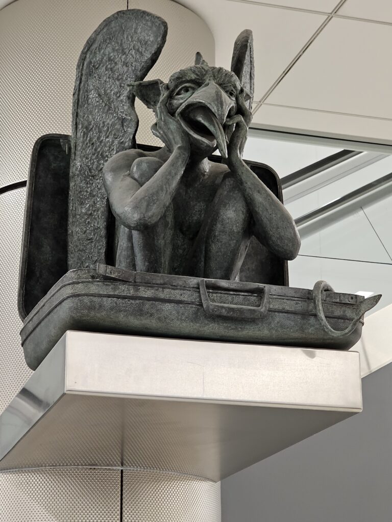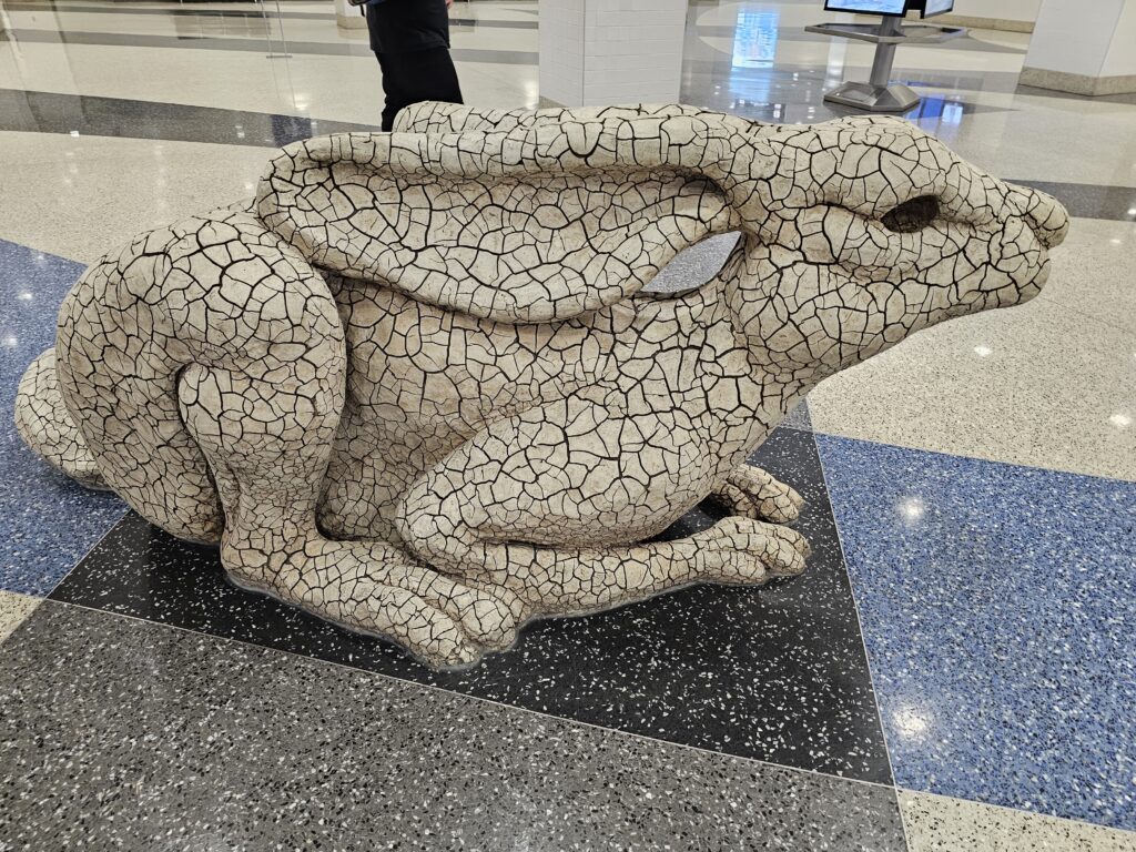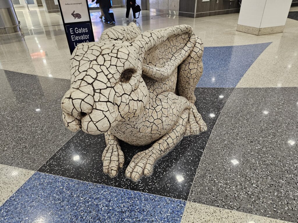 The AHR conference has wrapped up and it is time to go home. Spent the morning working in the hotel until checkout time and then migrated to the airport for my late afternoon flight back to Denver. Found some neat sculptures in the airport, around the transit from Terminal 3 to the D concourse (or should I say “island”).