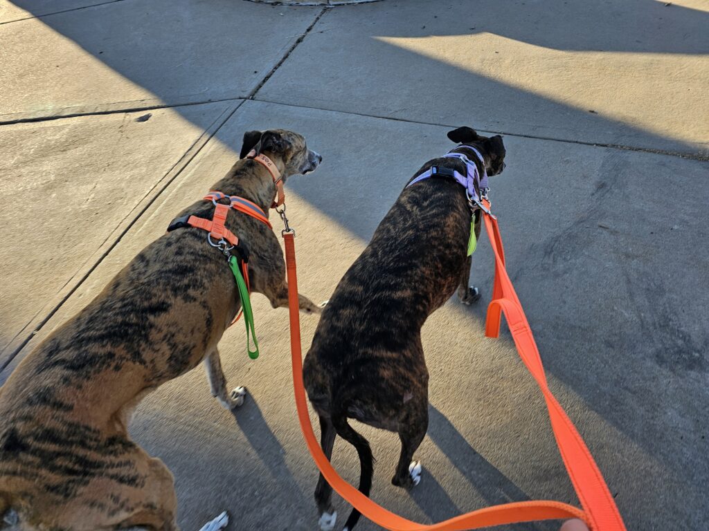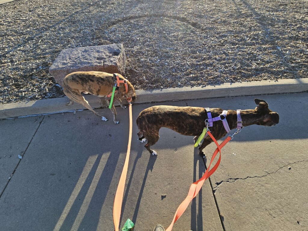 After clearing out my email and a bunch of pending tasks, I started off the day with taking the dogs out for their morning walks, I don’t normally do the AM walks but Jesse had an early meeting so I did the morning walks. They got a little bit of a longer walk than their normal 3/4 mile walk that we do most weekdays. I am trying to get my steps in and had time. They always like the longer AM walks, of course Res got really confused when I turned before the sidewalk next to the park and walked him back through the park. He is a boy that likes routine and I messed with it. Climber just like to go.