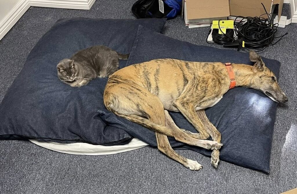 She was the best judge of a greyhound when it came to them being cat safe. We knew within minutes if a greyhound visiting the house or was a candidate to join the pack was cat safe or not. She would disappear and go under our bed and would not come out if the hound wasn’t cat safe. If it was cat safe or workable she would sit in the edge of the door watching and deciding her next move. She never took shit off of a hound and always put them in their place if they thought they were king of the house.