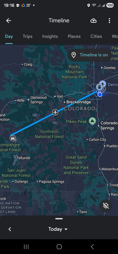 Made it. As I said it is a very short flight over from Montrose to Denver, if it were summer I would not have flown it, but Winter is another story. Even with the flight delays i am still better off than driving it.