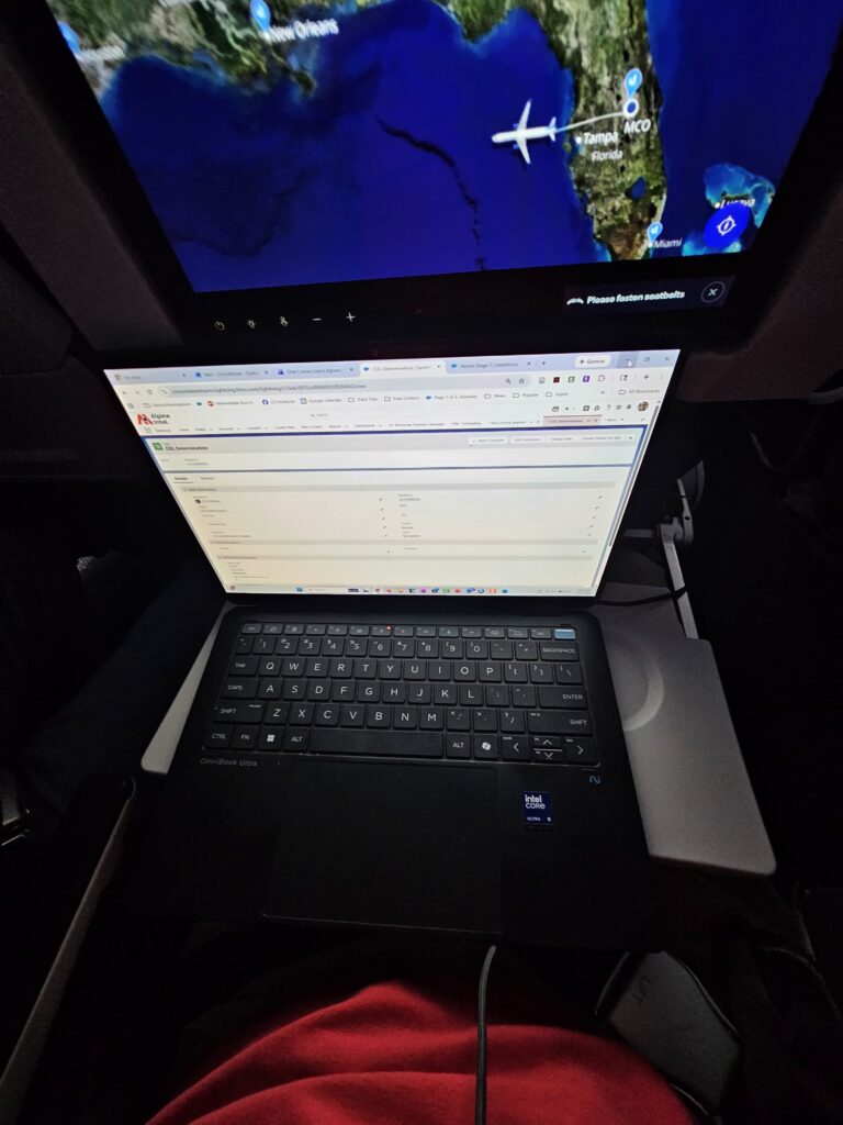 And, then it was time for my flight home. Unfortunately I was not able to get a seat in the front of the plane for this trip home, I had to deal with seat 28C near the back. I will never do that again. The guy in front of me was bouncing back in his seat to try and break the stop so that it would recline further. Needless to say it was bouncing off of my knees. Of course every time the flight attendants walked by he’d stop, but his entire goal was to bust that seat. Didn’t work. Of course I had a really hard time getting anything done on that flight. I really count on being able to work on my flights, and it was a difficult thing on this leg of my trip.
