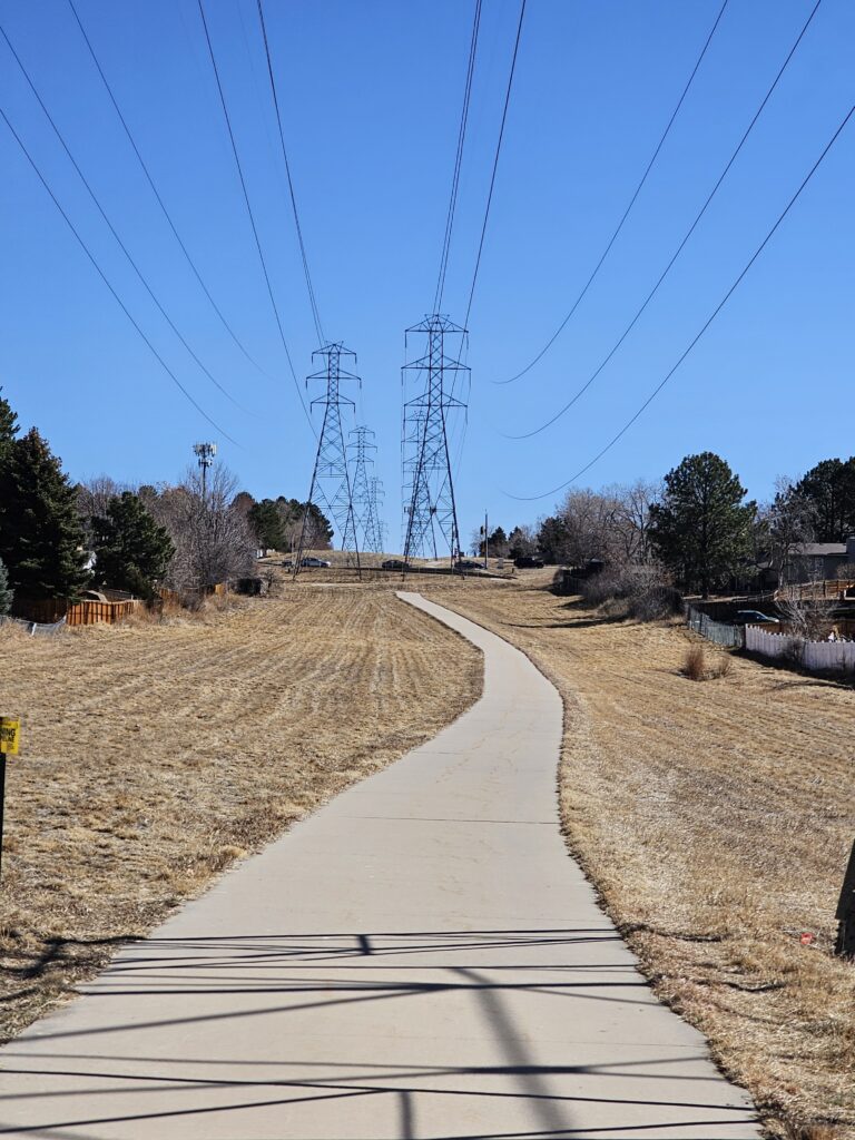 I have completed all of the February swimming challenges and then a majority of the February Walking and Health Challenges. Today I finished the one that has been eluding me, the Running Climb (vertical distance during runs). I did the power line trail today from the bottom to the top and fixed that issue. The photograph below is looking up towards the top of Power Line Trail, I had already done an equal climb from the bottom to the point I was standing.