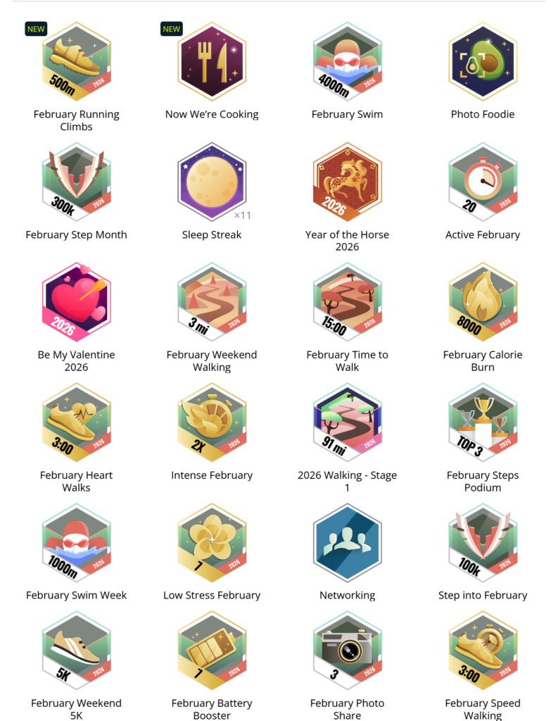 I have made an honest effort on the February running challenges but had to cut back on that as we may be having some weird heart issues (not deadly, really not that dangerous, just irregular – it has been diagnosed, now we have to figure out if it’s worth doing something about). But, I am happy with the challenges I have completed.