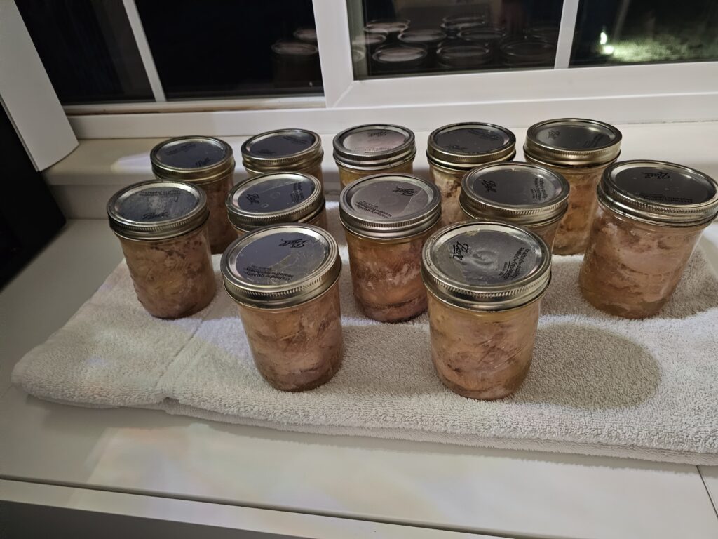 Jesse spent most of the day doing some canning and prepping our meals for the next week. We are trying to stay on the weight watchers diet so Jesse searches around for good recipes that are low in points.