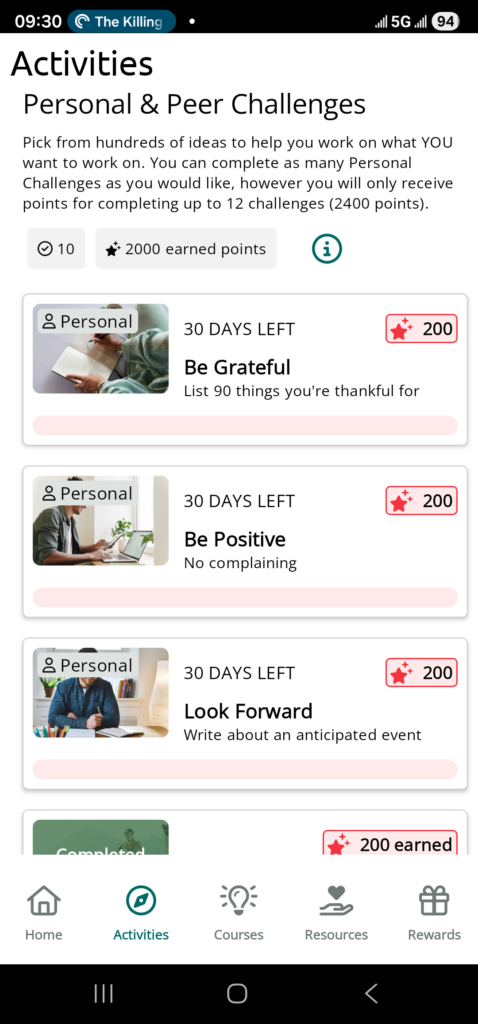 Oh, onto some other new and “fun” stuff. We have health and mental well-being challenges available to us at work now through a platform called WellRight. If you complete all of the activities by year end you can earn up to 350.00 in gift cards. Yeh, it’s not much but the activities are sort of fun. Anyways, I have to work on three specific ones this month: