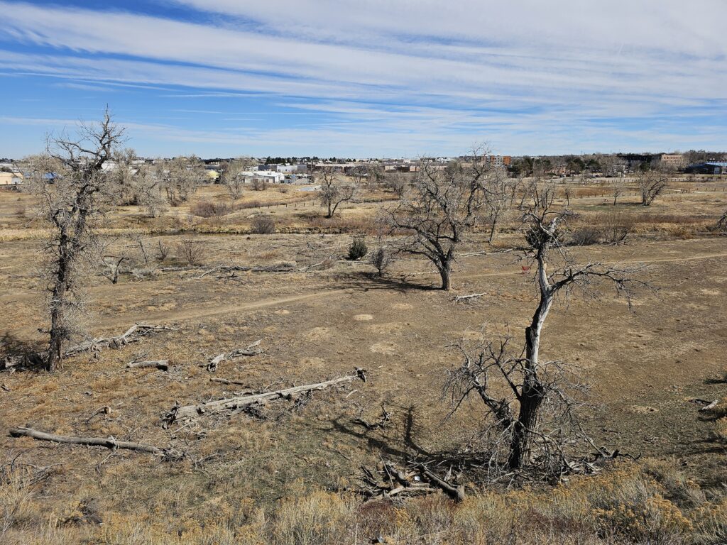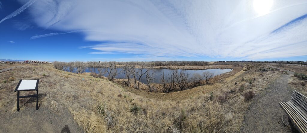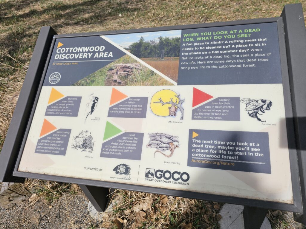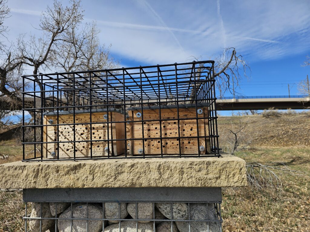 After the appointment I decided to check out a new trail (well new to me) that I have ridden light rail next to many times but keep saying I need to make time to check this out, and this is the first time I have been able to do so. It’s really neat. The paved trail goes North from the Fitzimins R Line station and first goes through the Cotton Wood Discovery Center. I found a few interesting things there but the most interesting one was a series of “Bee Hotels” that are designed for “solitary bees”, I never knew it was a thing, but look it up sometime, it’s really. There are bees that are not honeybees and are not part of hives, but they are still pollinators. These hives, or Bee Hotels were built for those bees.