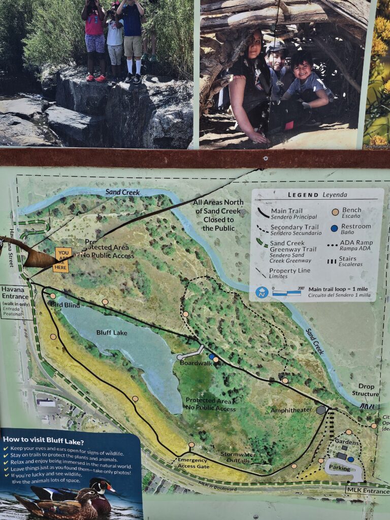 I took the time to walk all of the trails that are open, there were some areas that are closed and are still under development, it was time to head back. I headed back to the parking lot staying on the Sand Creek Green way, following the creek back in the direction of Toll Gate Park. One of my future plans will be to walk that last 3 miles of Sand Creek Green way where it connects to Toll Gate Trail (which I have done all of). When I had completed all of this I was surprised that I was just over 6 miles walking. I thought it was a bit longer than that given that I had crossed over into Denver.