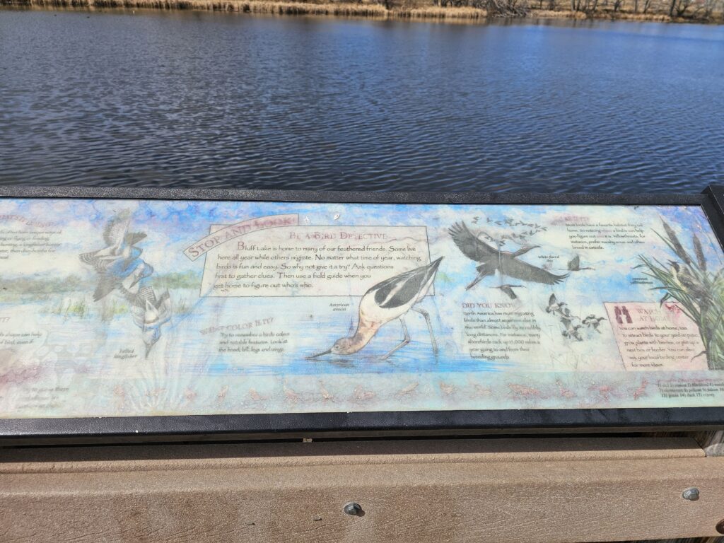 I finally reached the Bluff Lake Nature center which looks like it is brand new, or has just been rebuilt. I never knew this existed. It’s a trail and visitor center, as well as several learning areas for local school groups around Bluff Lake. Seems also to be a bird watching paradise because there were several bird photographers around with extremely expensive equipment trying to capture the perfect photo. I think I do pretty well with my Samsung Galaxy A24 Ultra Android phone.