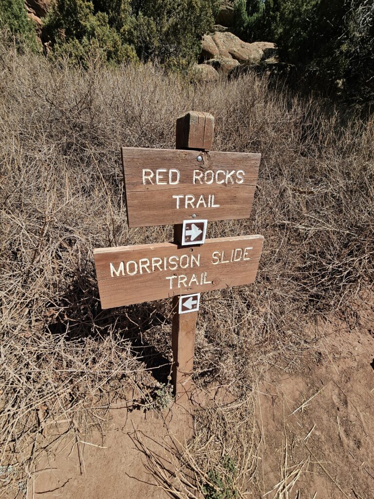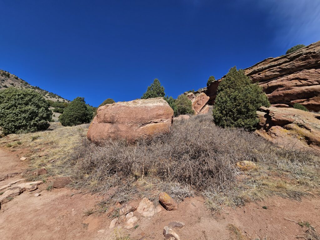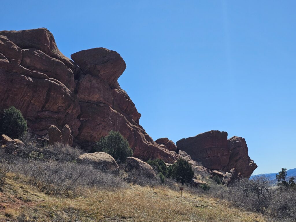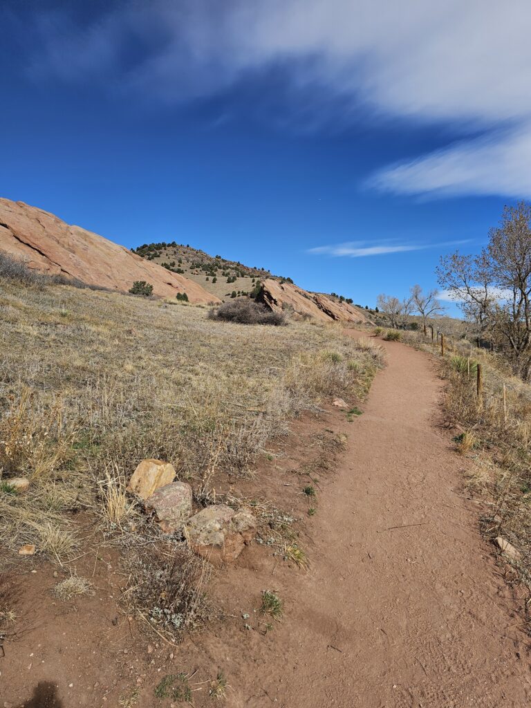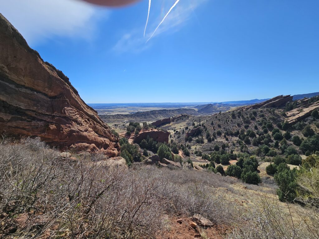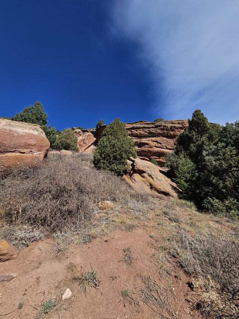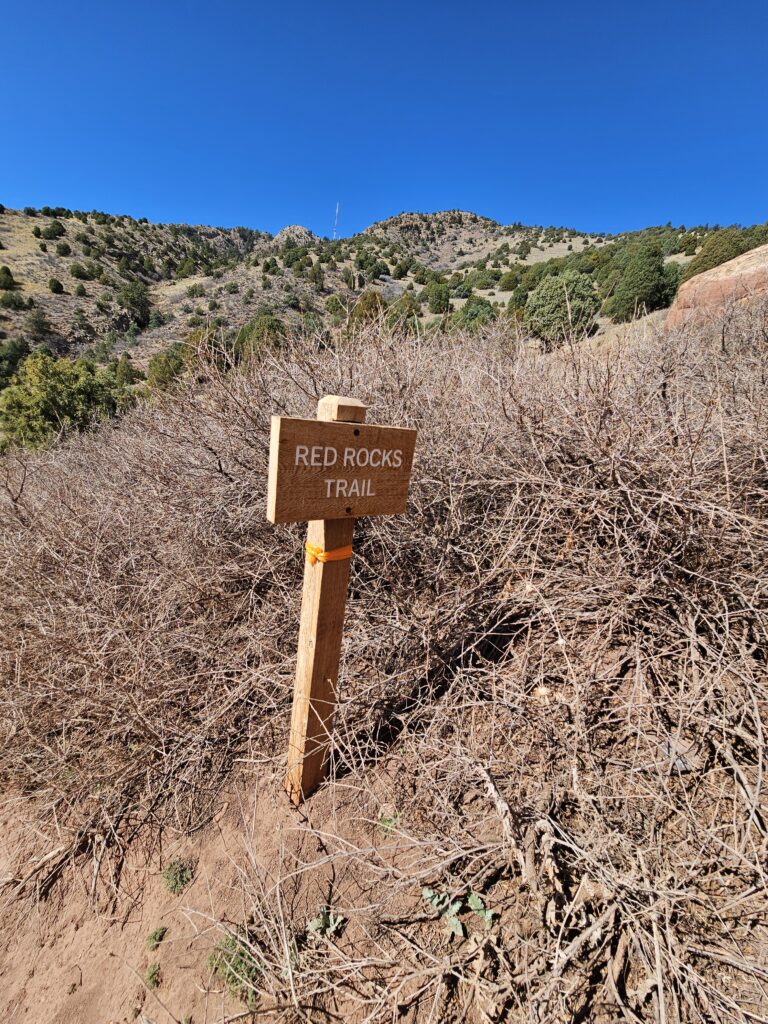 I packed a bunch of water, some snacks and did the hour drive out to the West to Red Rocks Park.It took me a while to find the right parking lot for the trail I wanted to start with. For some reason things are not marked very well, but a quick download an a full years’ subscription to All Trails, I was able to find what I was looking for. And, yes, I think All Trails was worth it because there were a couple questionable trail markers on the loop and I was very happy to have the maps downloaded onto my phone.