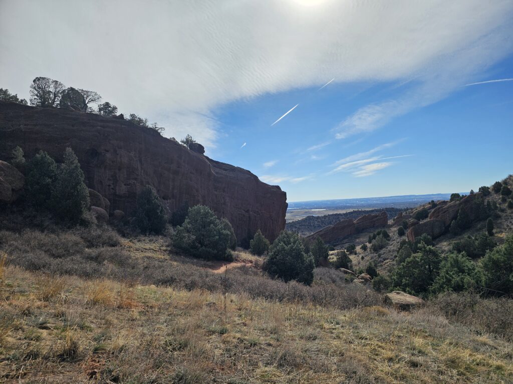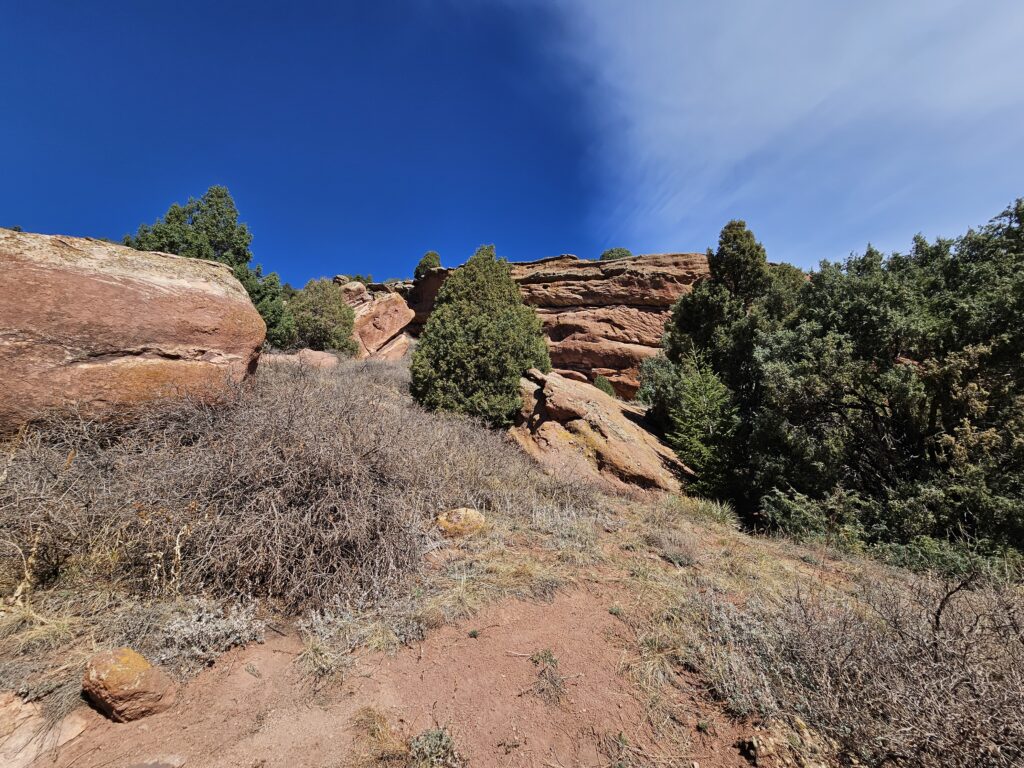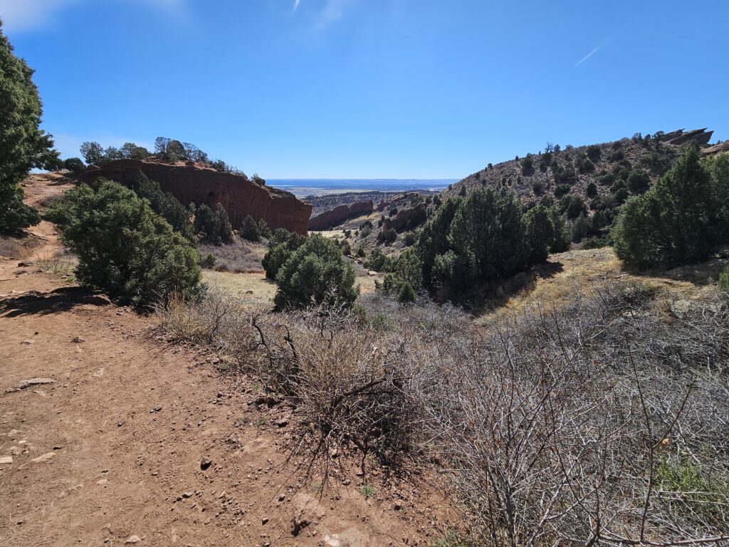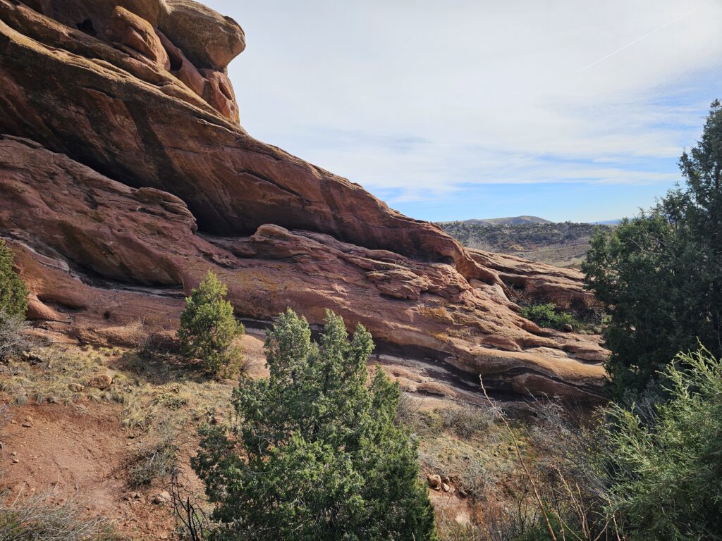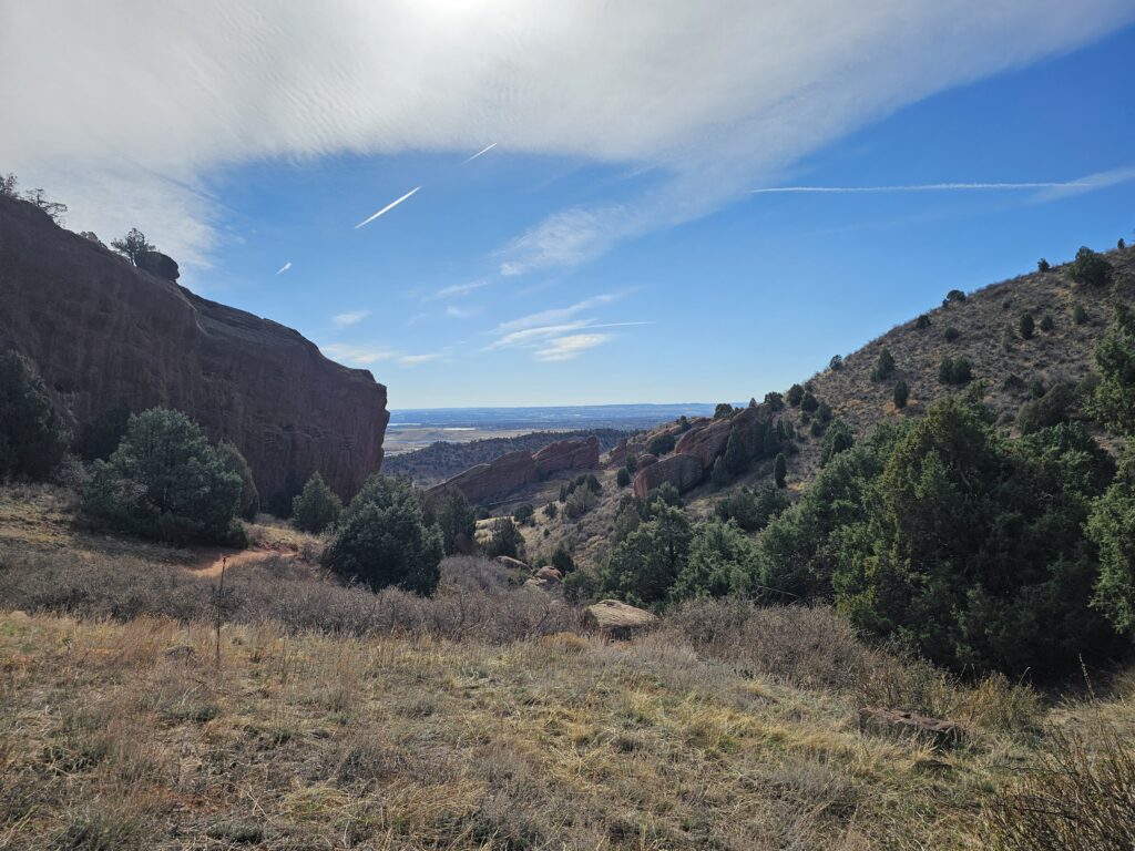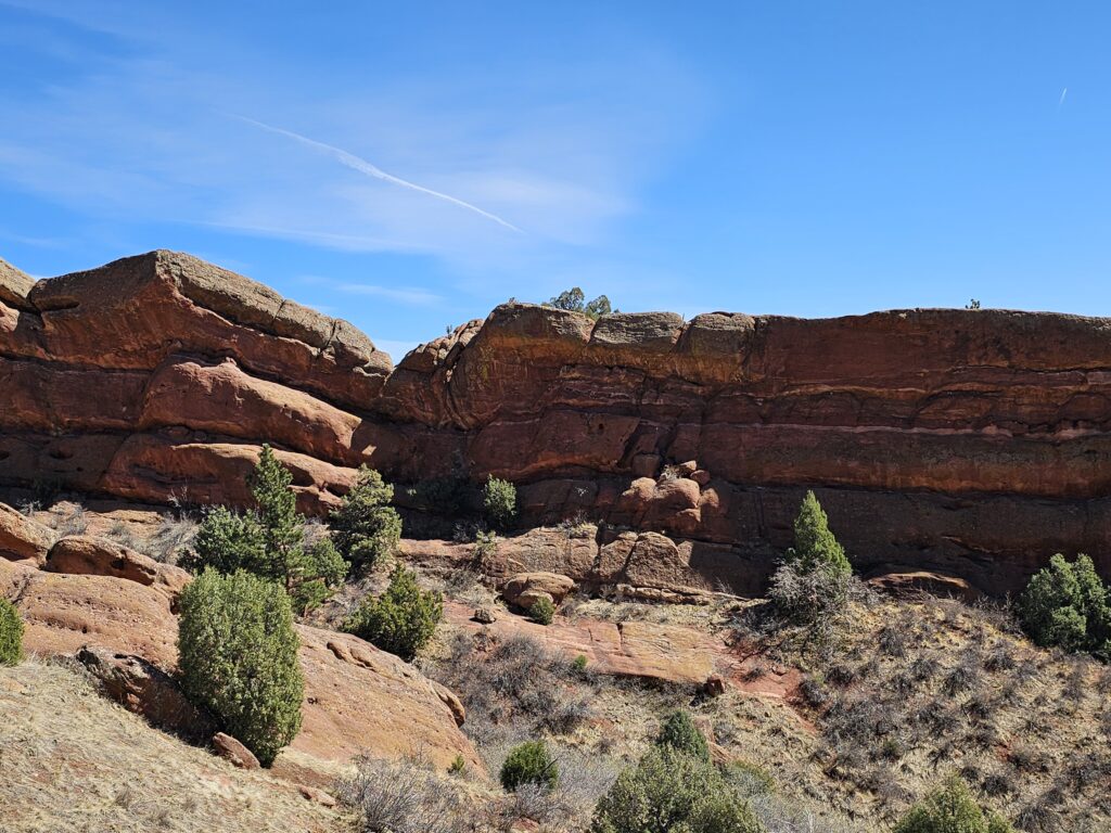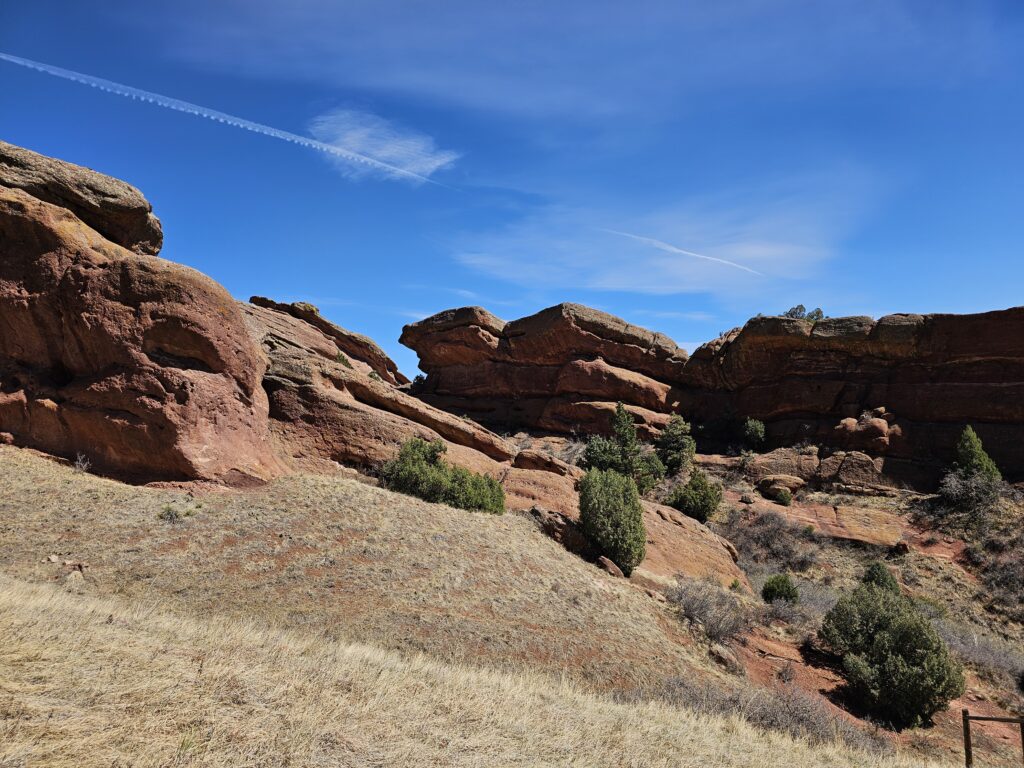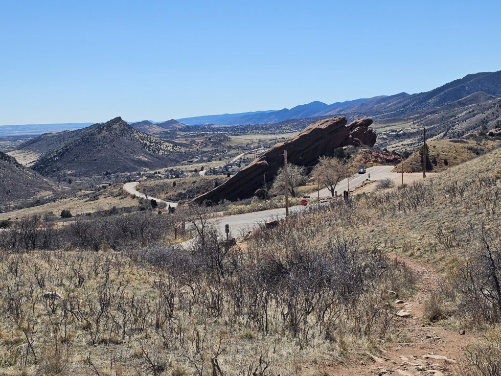 I packed a bunch of water, some snacks and did the hour drive out to the West to Red Rocks Park.It took me a while to find the right parking lot for the trail I wanted to start with. For some reason things are not marked very well, but a quick download an a full years’ subscription to All Trails, I was able to find what I was looking for. And, yes, I think All Trails was worth it because there were a couple questionable trail markers on the loop and I was very happy to have the maps downloaded onto my phone.