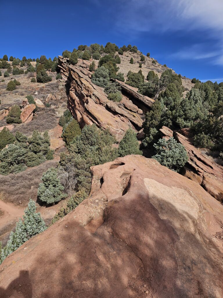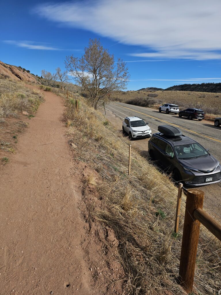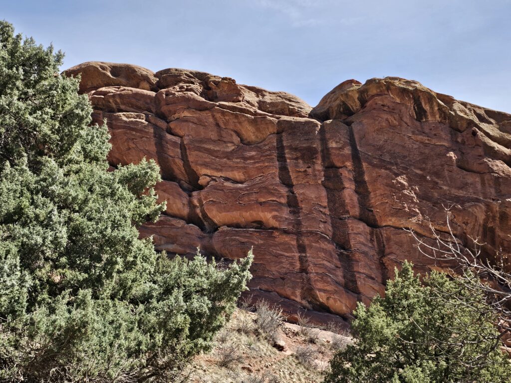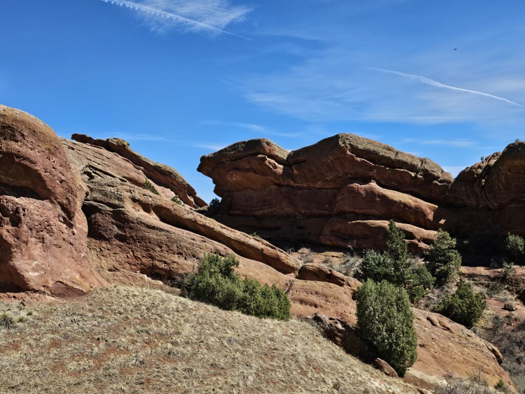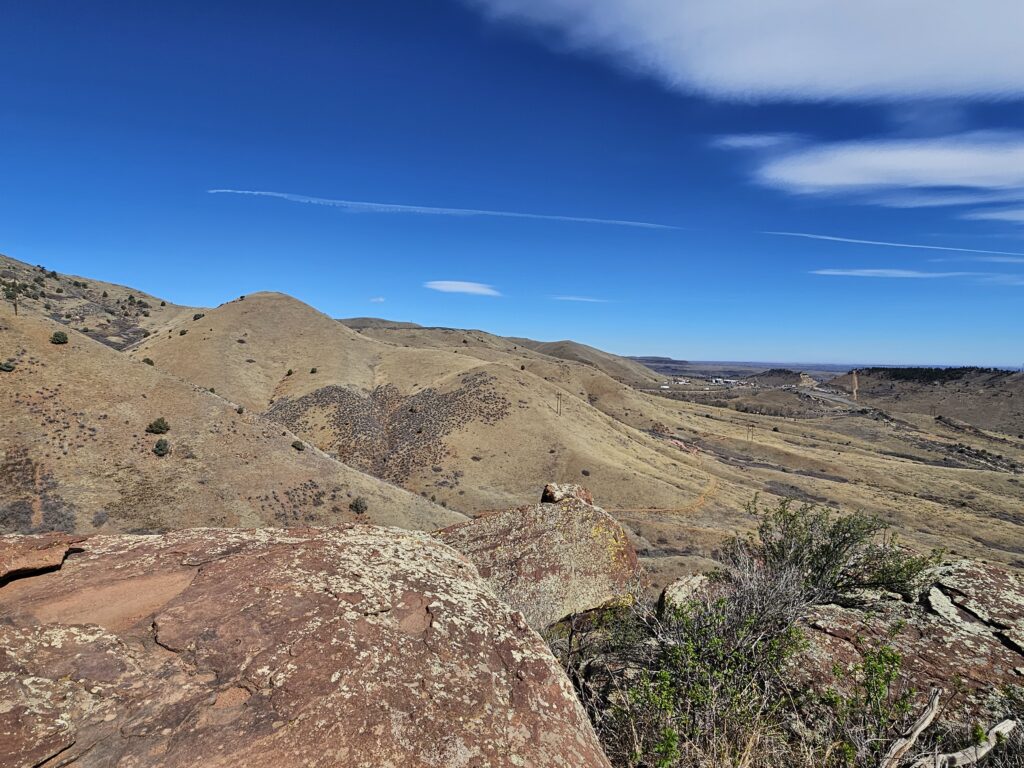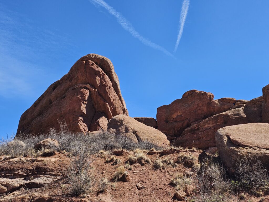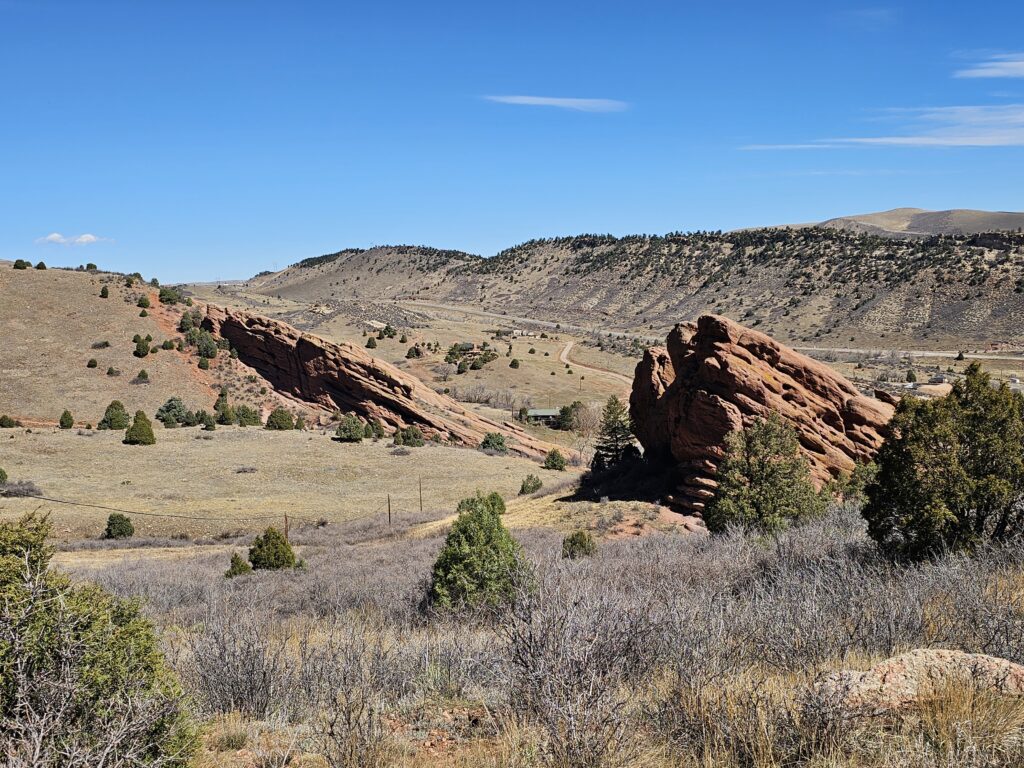 I packed a bunch of water, some snacks and did the hour drive out to the West to Red Rocks Park.It took me a while to find the right parking lot for the trail I wanted to start with. For some reason things are not marked very well, but a quick download an a full years’ subscription to All Trails, I was able to find what I was looking for. And, yes, I think All Trails was worth it because there were a couple questionable trail markers on the loop and I was very happy to have the maps downloaded onto my phone.