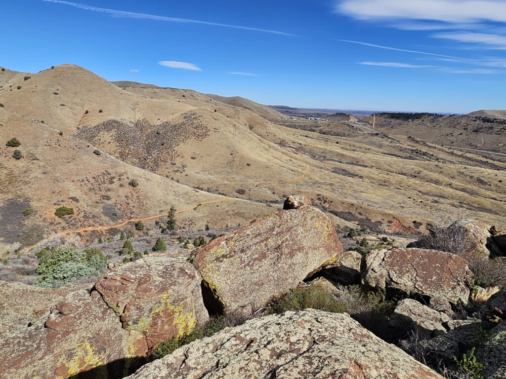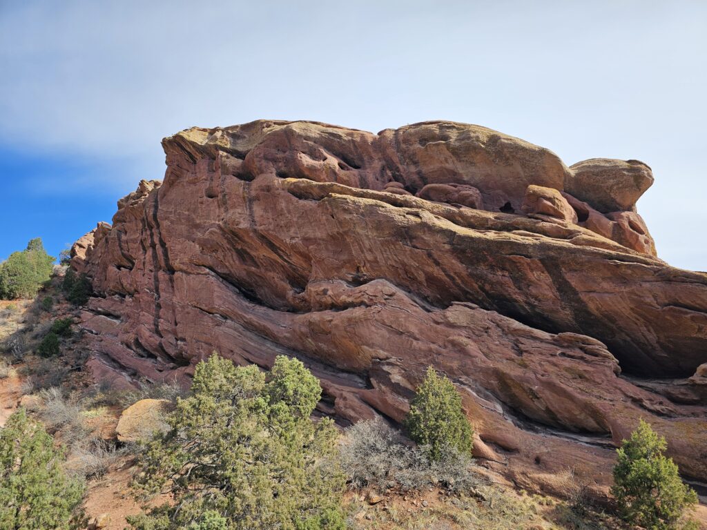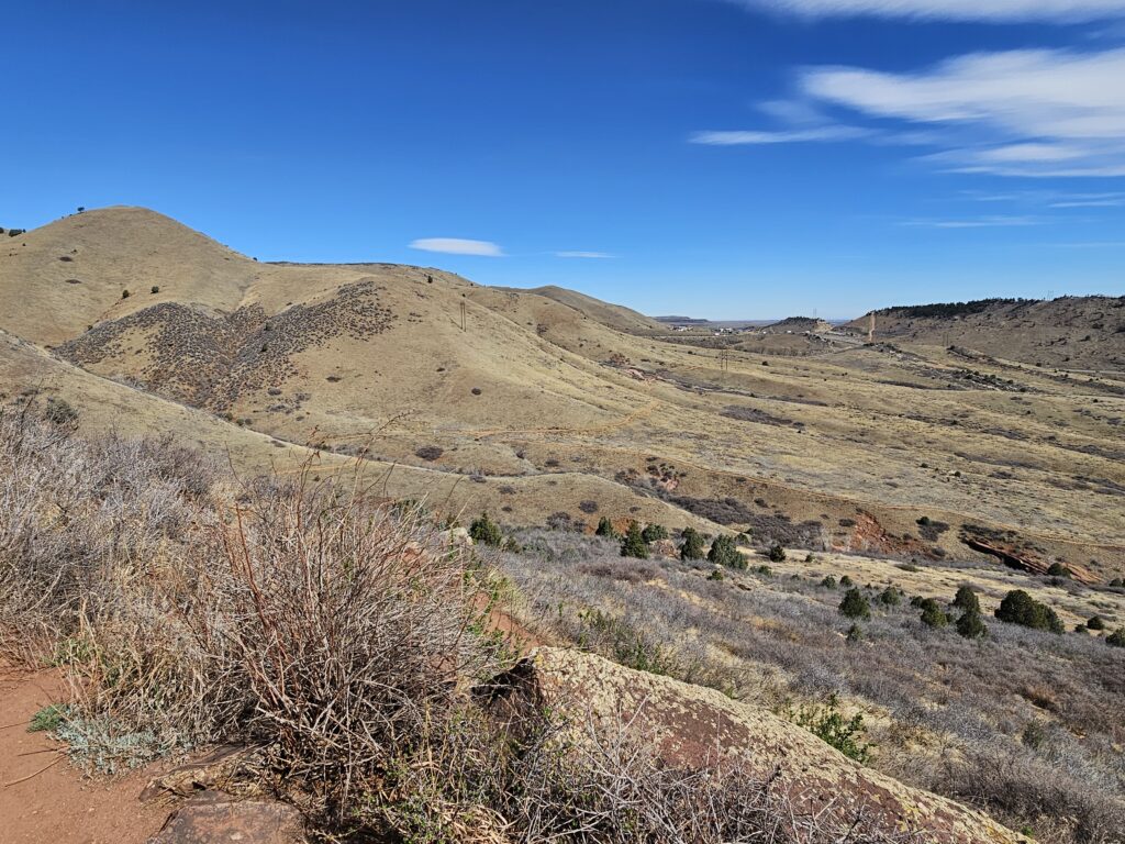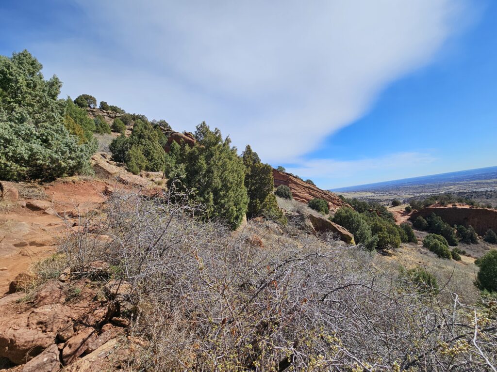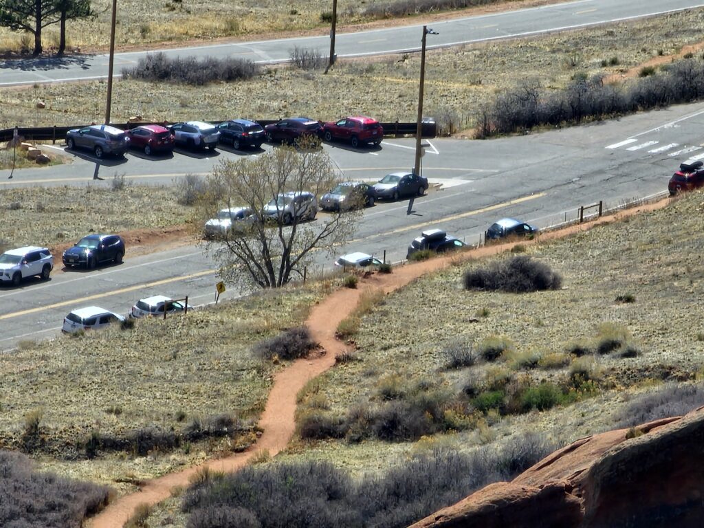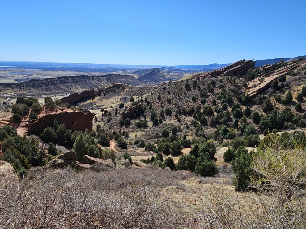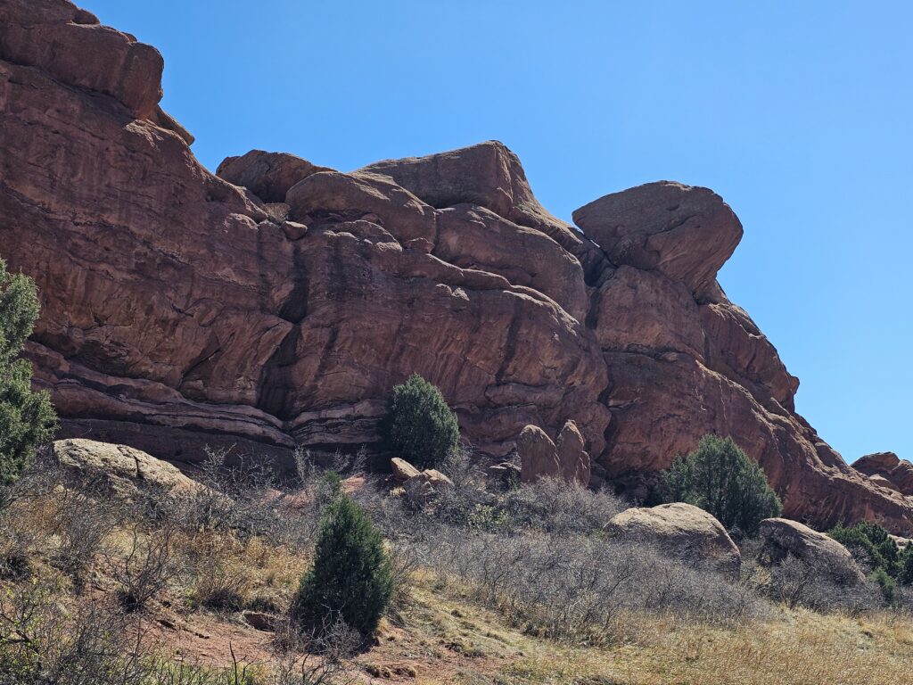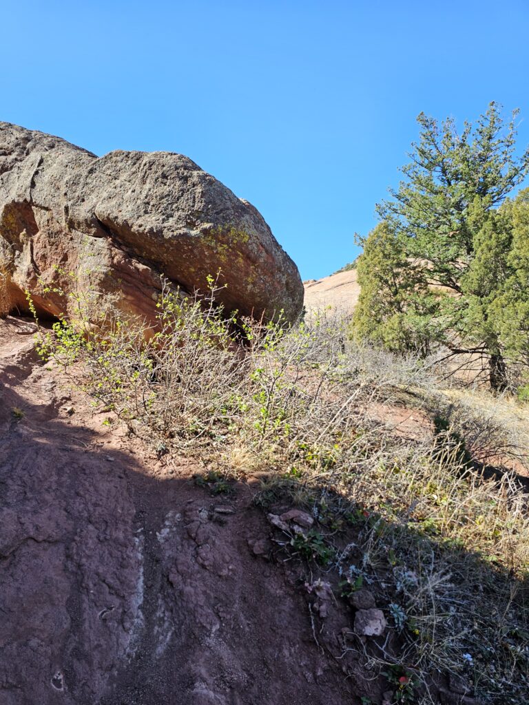 I packed a bunch of water, some snacks and did the hour drive out to the West to Red Rocks Park.It took me a while to find the right parking lot for the trail I wanted to start with. For some reason things are not marked very well, but a quick download an a full years’ subscription to All Trails, I was able to find what I was looking for. And, yes, I think All Trails was worth it because there were a couple questionable trail markers on the loop and I was very happy to have the maps downloaded onto my phone.