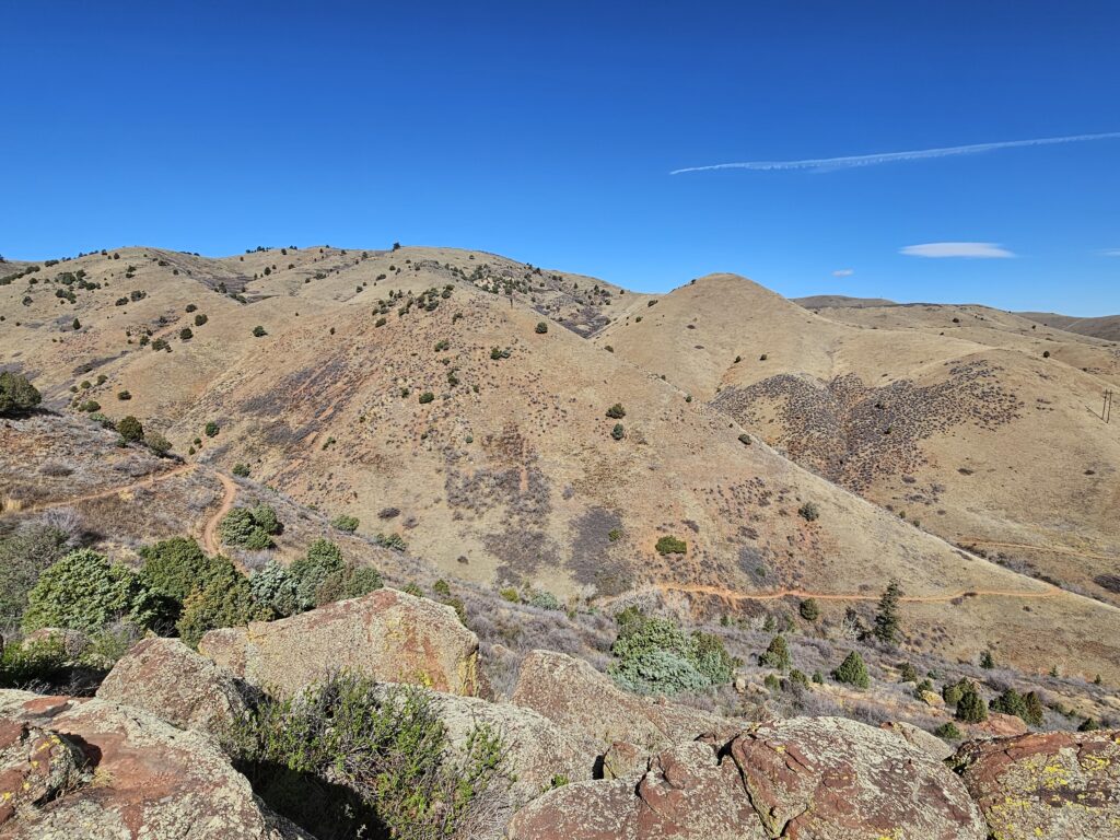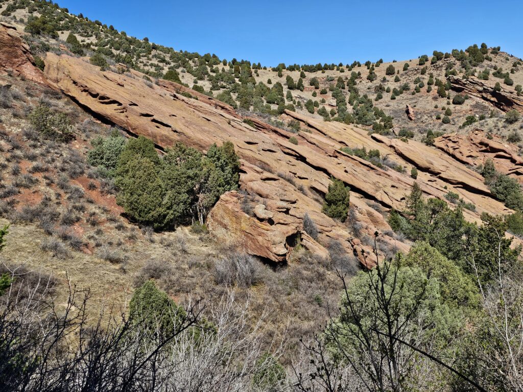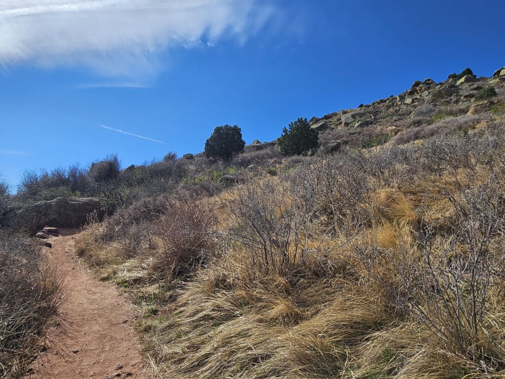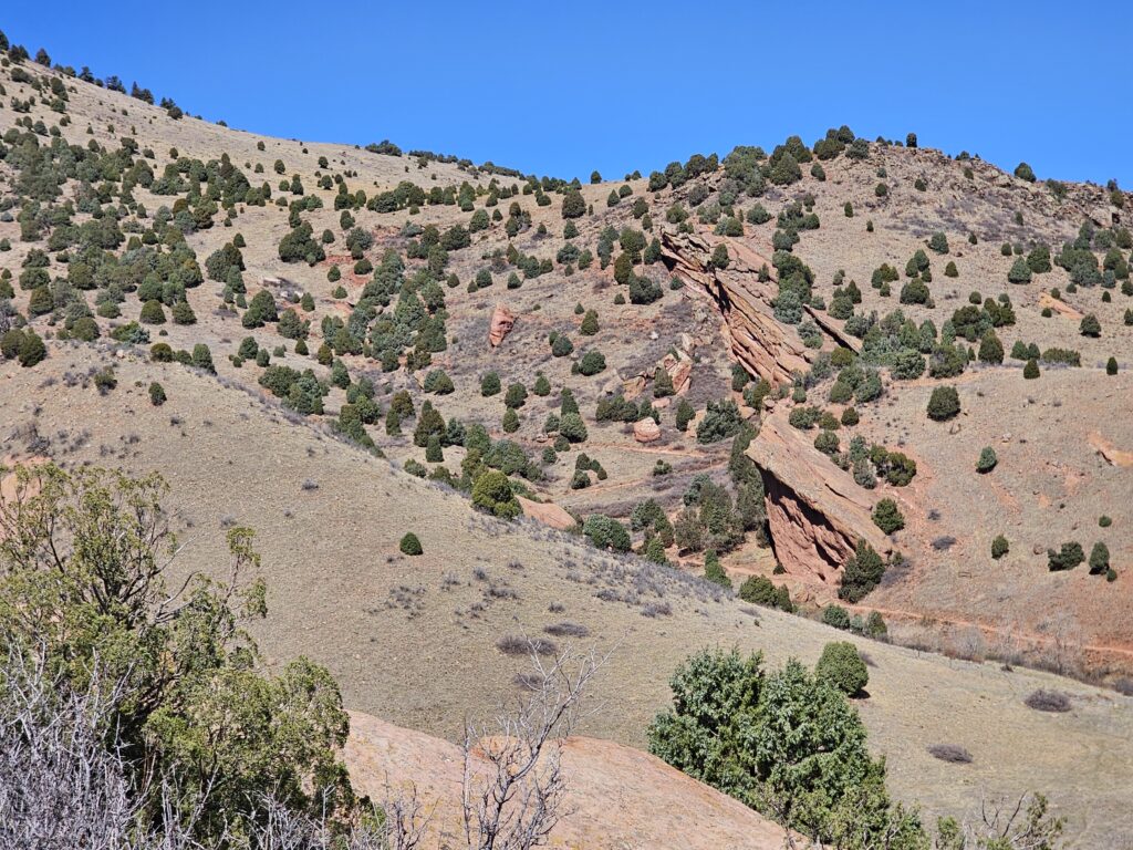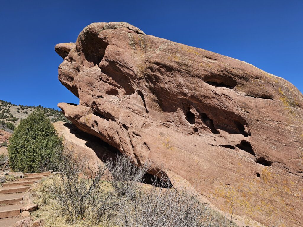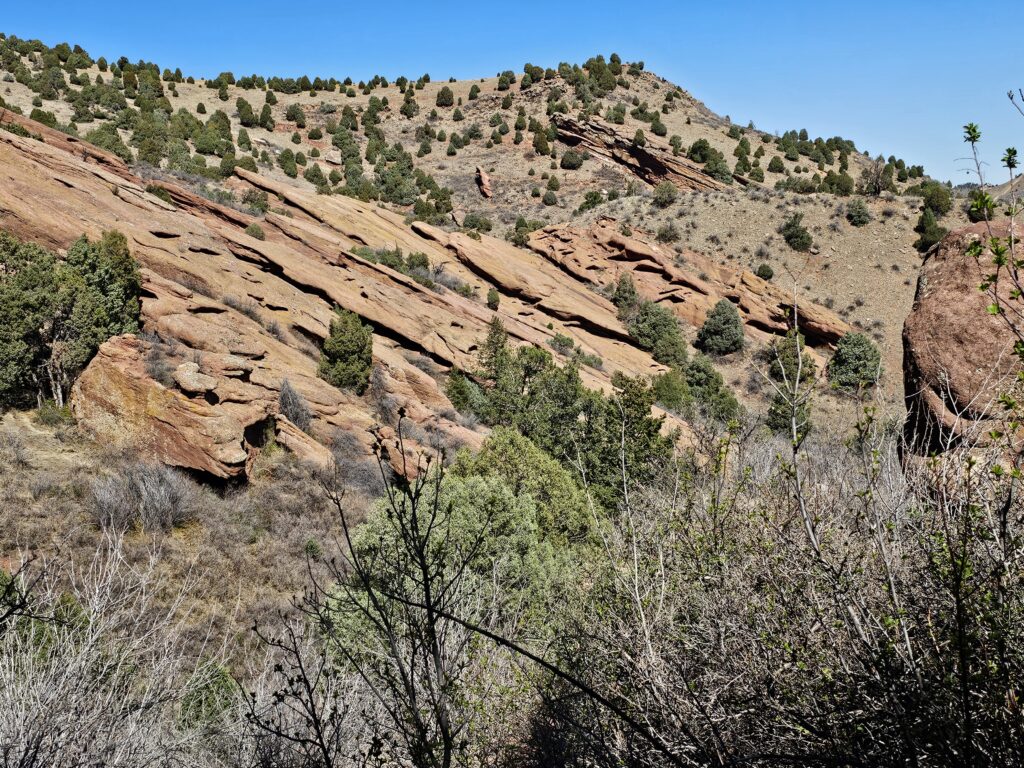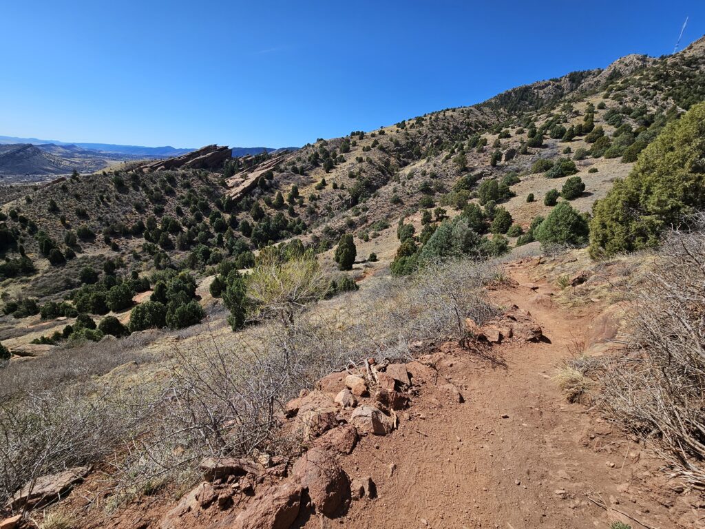 I packed a bunch of water, some snacks and did the hour drive out to the West to Red Rocks Park.It took me a while to find the right parking lot for the trail I wanted to start with. For some reason things are not marked very well, but a quick download an a full years’ subscription to All Trails, I was able to find what I was looking for. And, yes, I think All Trails was worth it because there were a couple questionable trail markers on the loop and I was very happy to have the maps downloaded onto my phone.