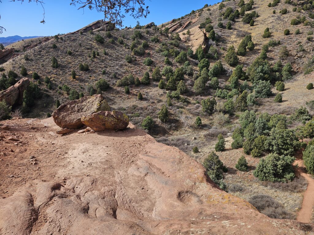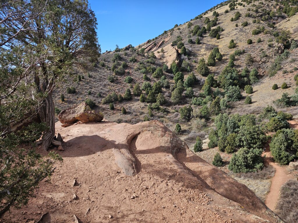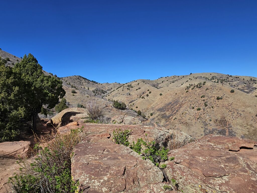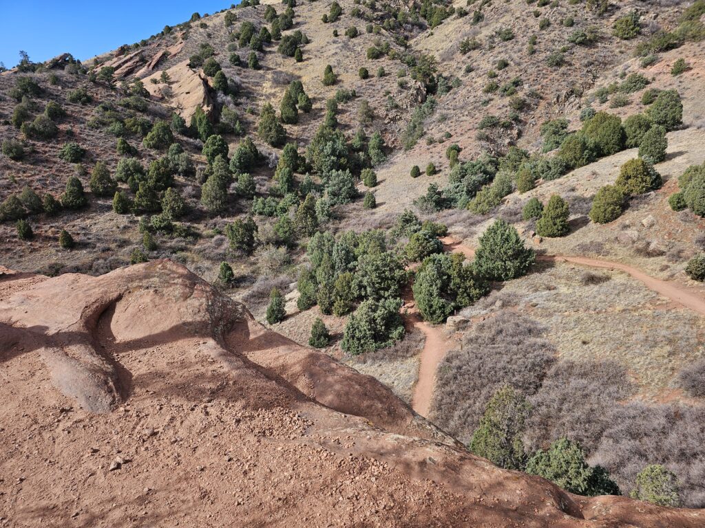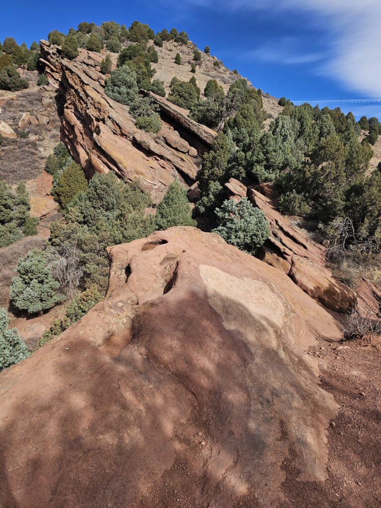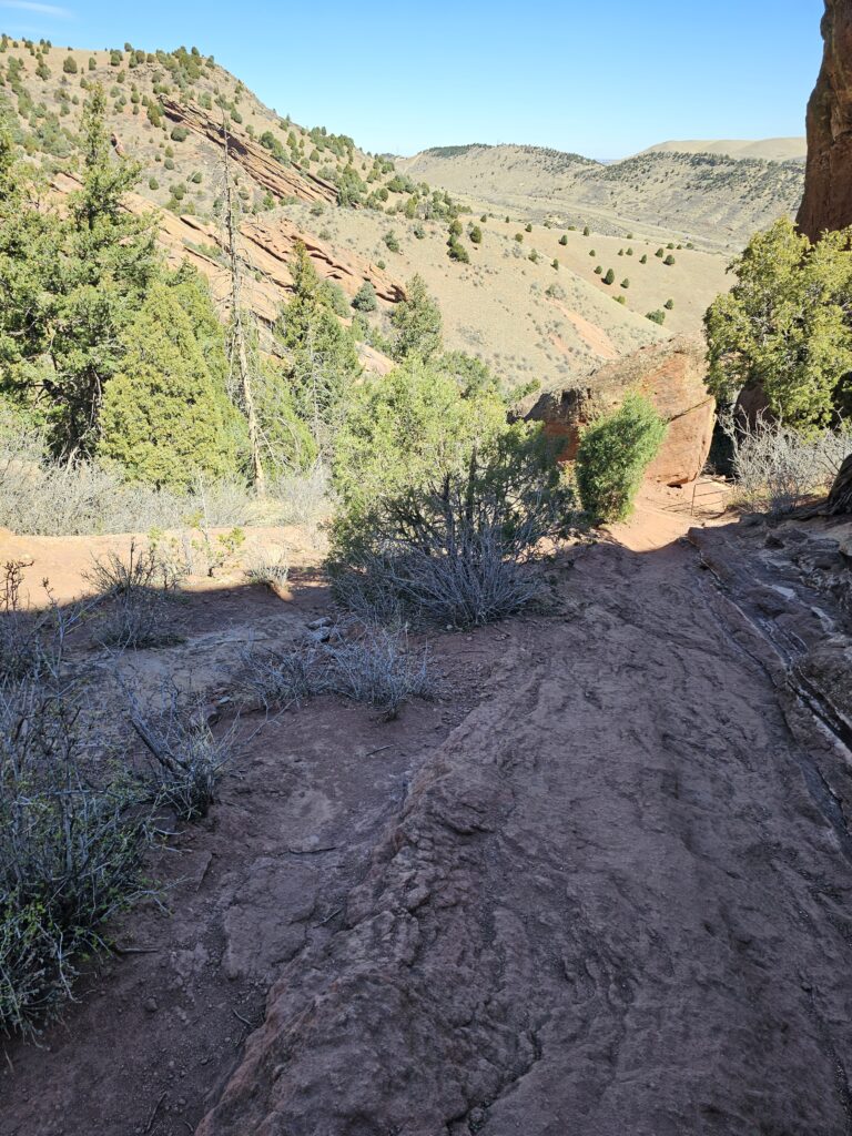 I started off with the Red Rocks and Morrison Slopes Trail loop. This is a 3.5 mile loop with a total elevation climb of 853ft. The trail is a bit rocky, and there are areas that you have to have really good footing. But, let me tell you, it was worth it! The views along the way were awesome, and it was sort of neat to look down and see how far you have climbed.