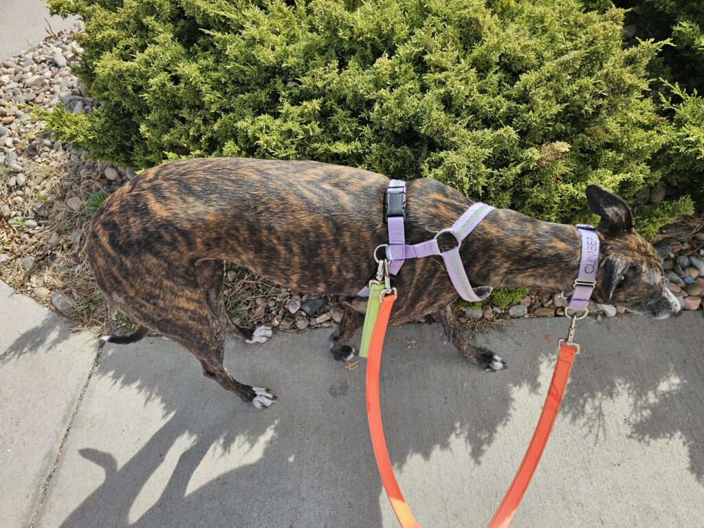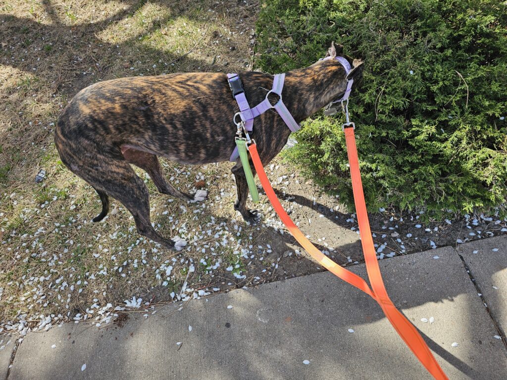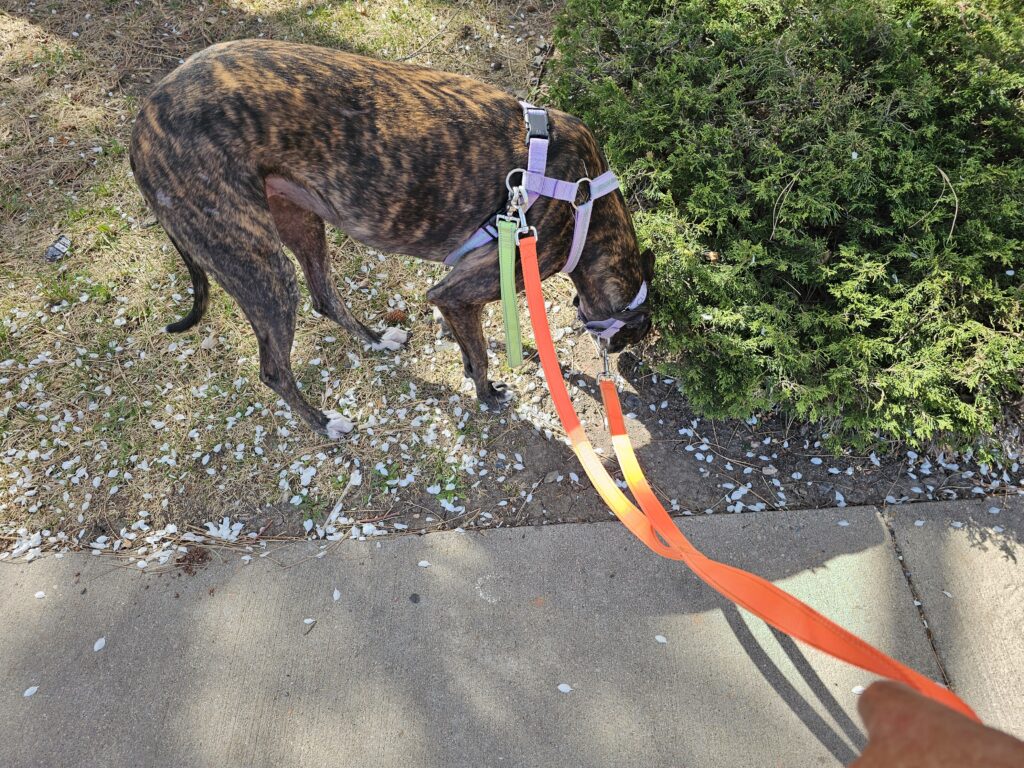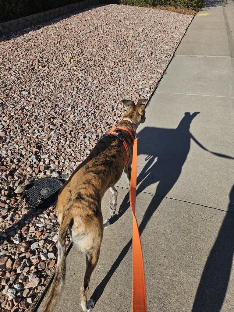 After Jesse got up and I had another cup of coffee it was time for walks. Weekends are lone walks, I always take Res first. Res gets to go as far as he wants, within reason. He just hasn’t figured out yet that no matter how far away from the house he goes, he is required to walk back home. He also hasn’t figured out that we cannot stop and smell and pee on every clump of grass or tree he comes across. Doing so becomes counter-productive for this length of explorations.