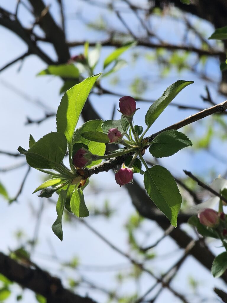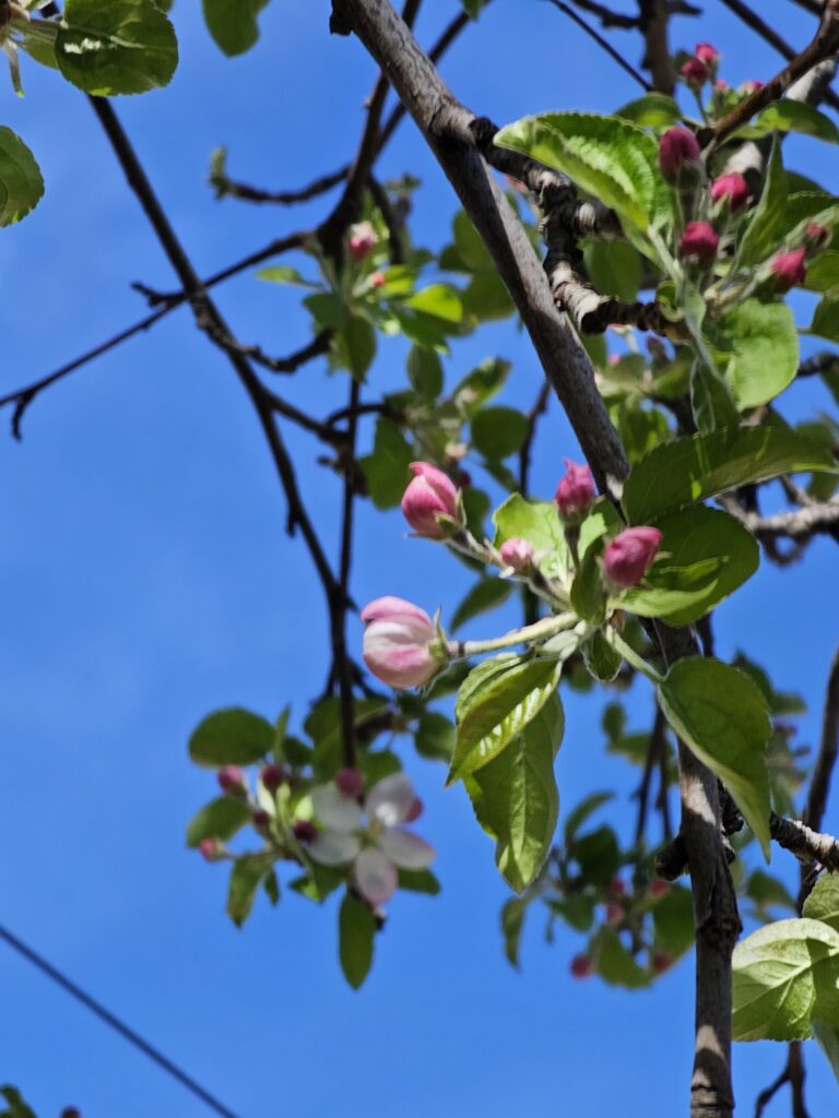 I just hope the apple tree is not flowering too soon this year. Last year it started blooming early and we had a frost while we were at Spring Meet in Abilene, KS and we didn’t get any apples. The Fall before, our first year in the house, we got tons of apples, we just didn’t know what to do with them. We found out near the end of the year that they made awesome apple sauce.