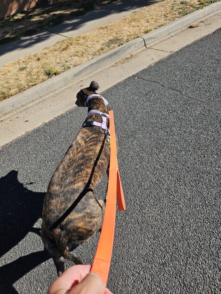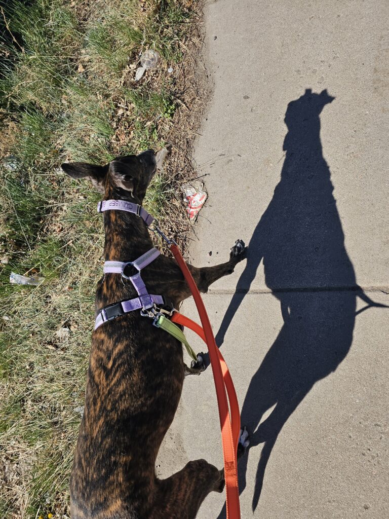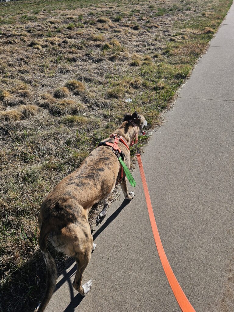 After Jesse got up I started walks. Saturday’s and Sundays are lone walks for the dogs. I think it is really important to remind them that they can go places and come home without each other. We also work on walking manners and get some distance in. Res always goes first, today we did a little over three miles because he did not want to stop. For some reason he really wanted to do the same walk I do with Climber, it was almost like he knew where she went lest week and he pulled me in that direction.
