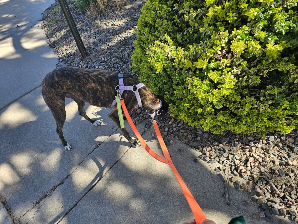 It was a nice day for a walk and I listened to one of my Podcasts while we were out and about. He was a little slow near the end, but I think I finally may have figured him out. he likes to be outside and when we are heading back to the house he does not approve.
