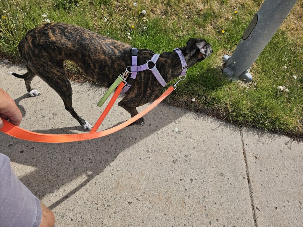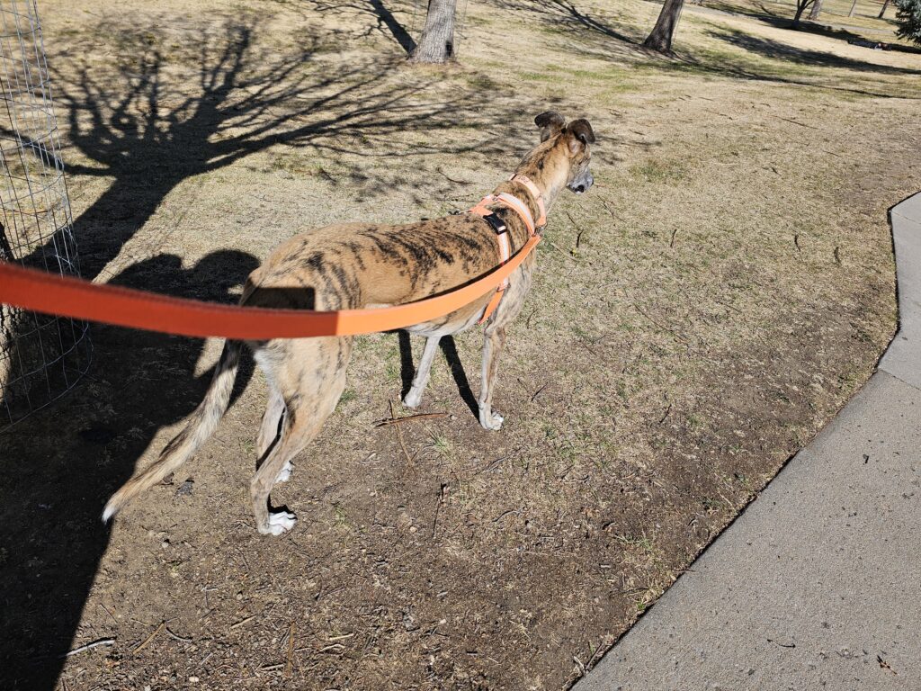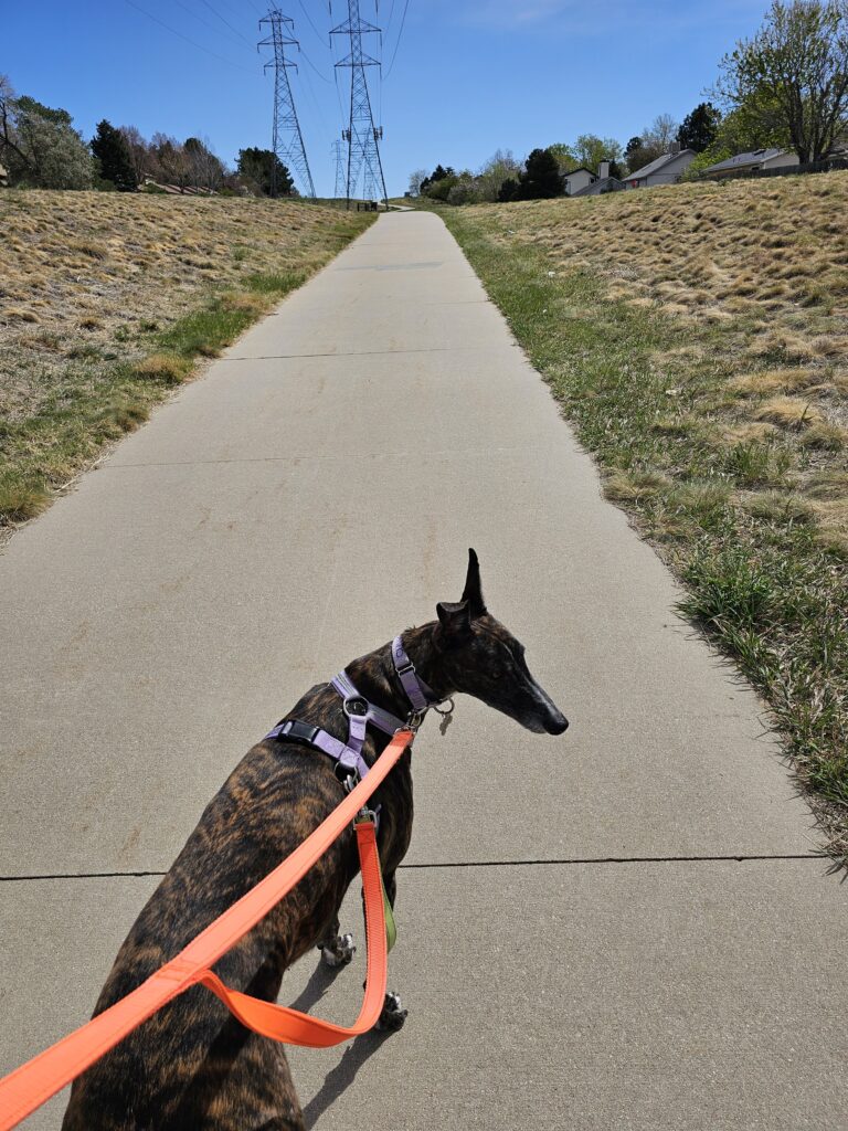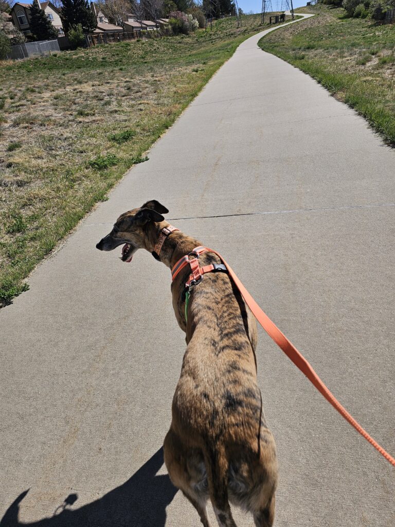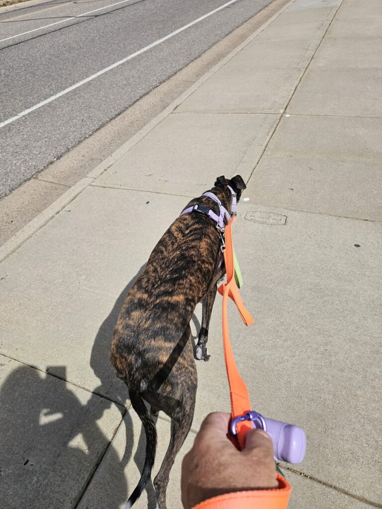 Res got his walk, he did well. We did 3.5 miles, a little over 5K. He wanted to go further but he has a little soreness on his pads that I am watching.