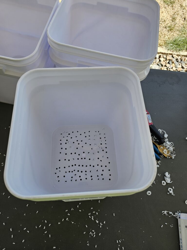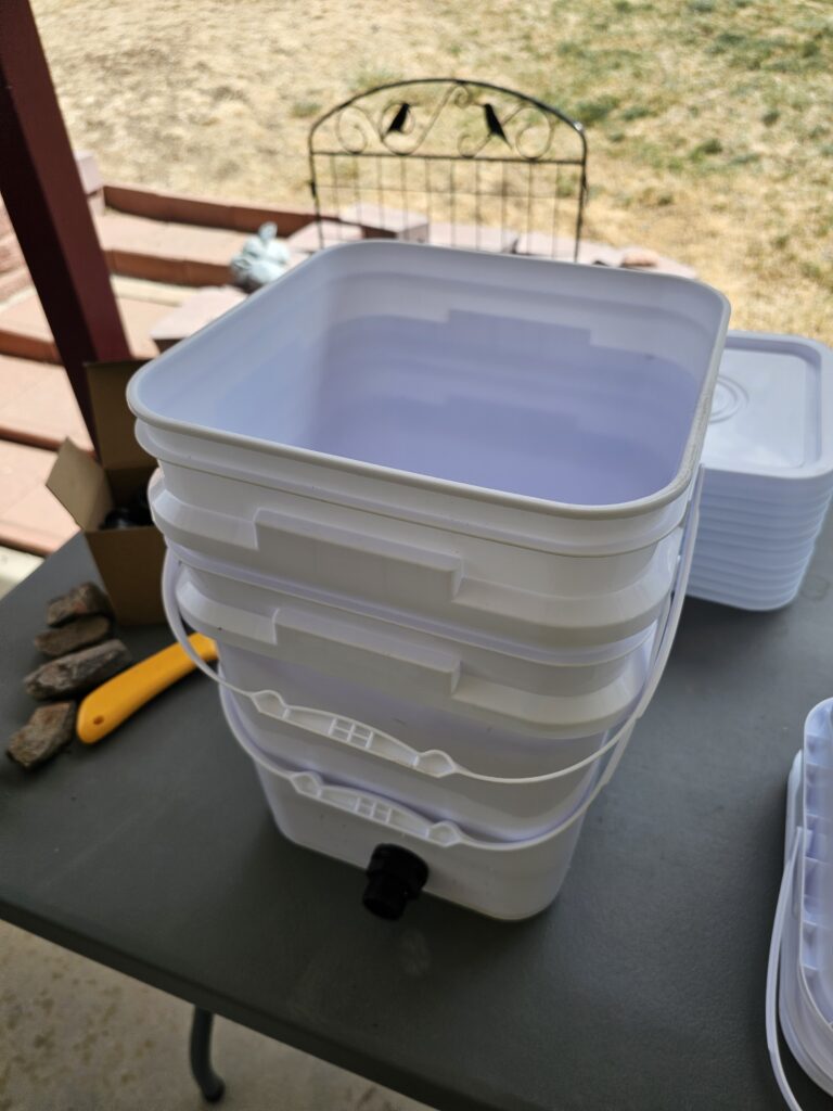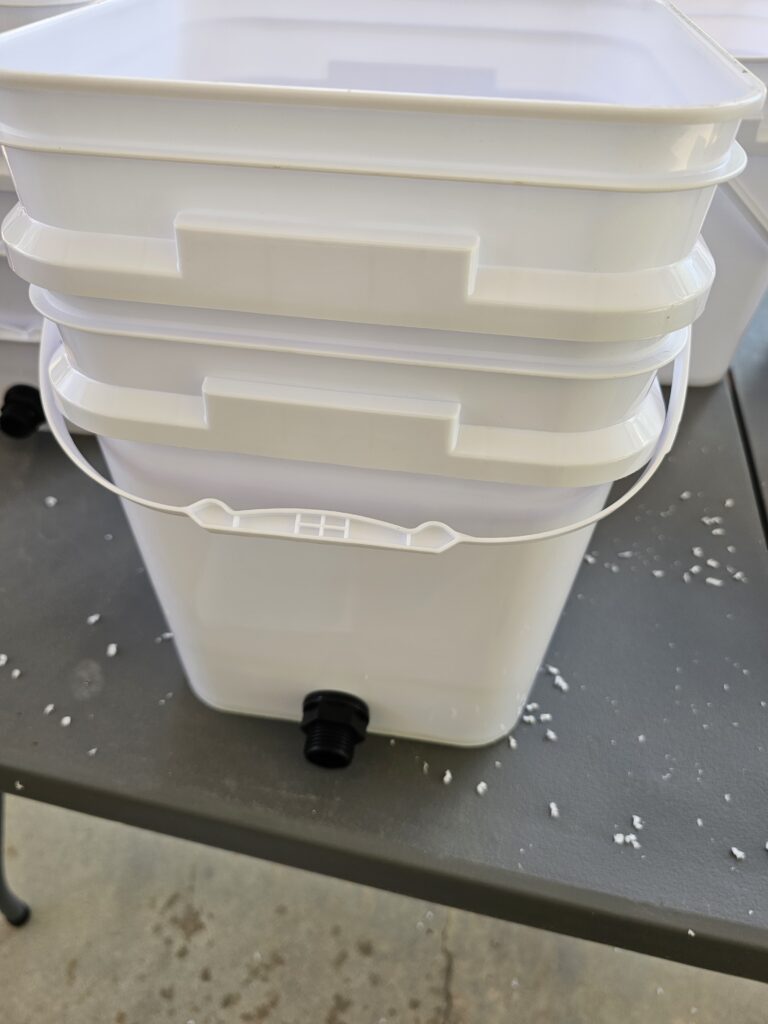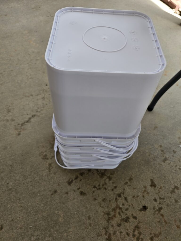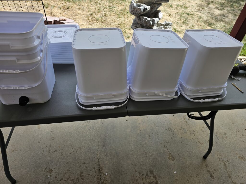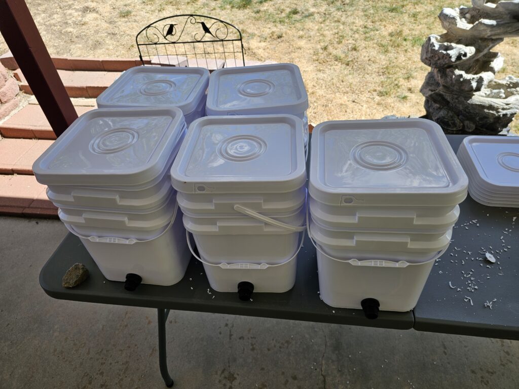 After I got back from my swim I decided it was time to get the hydroponic supplies out of storage and get an inventor of where I am at with supplies this year. I also wanted to build the double buckets we are going to try this year for our cucumbers and maybe some other vegetables. We were planning on adding some additional raised beds, but I just can’t see that happening based on our current water restrictions. I think the better idea will be to do most of our planting in hydroponics where I can control water use and chemicals (fertilizer, food, etc).