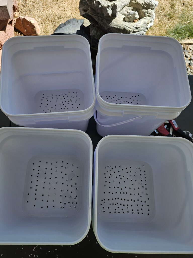 I have to give credit on this idea to DIY Hydroponic Gadens by Tyler Baras. We have done hydroponics for about 10 years now and I ran across this book one day when I was traveling to Portland, Oregon and decided to stop at one of my old hangouts, Powell Books, and I came across this gem. Lot’s of new ideas and some that will be an improvement of things that I have done in the past. Lot’s of new experiments this year. We have 5 of these buckets built.